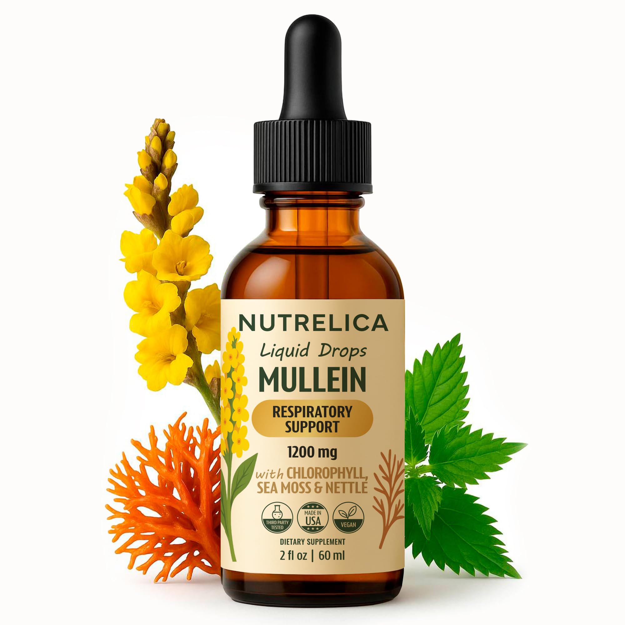 NUTRELICA Mullein with Chlorophyll Sea Moss & Nettle Lung Support 1200mg No Sugar Alcohol-Free Vegan Non-GMO