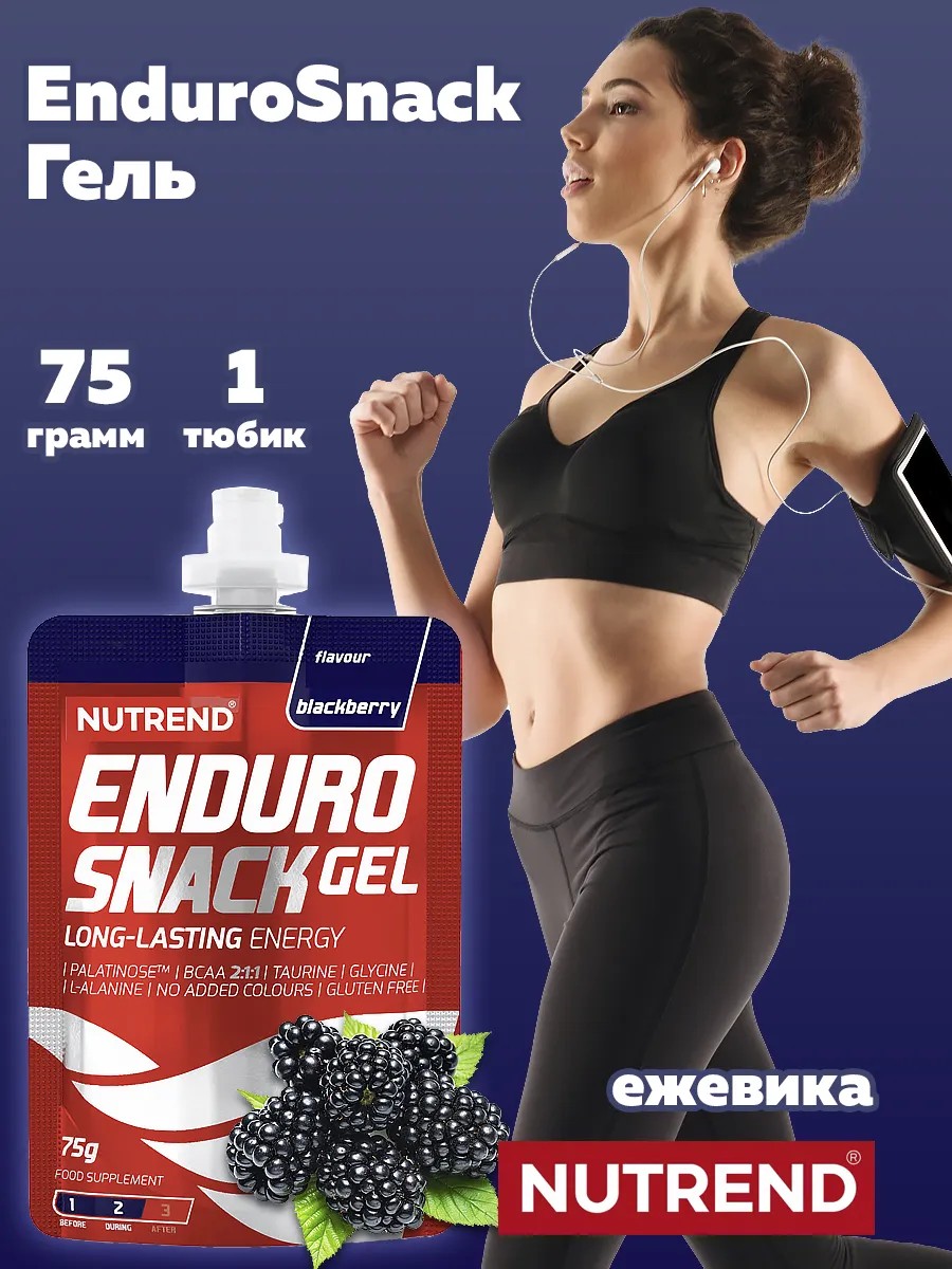 Nutrend Endurosnack – этот инновационный энергетический гель — идеальный источник энергии. Гелевые продукты можно использовать при тяжелых физических нагрузках с высокой частотой пульса, при которых человеческий организм не способен принимать твердую пищу. Основным ингредиентом является изомальтулоза (Palatinose TM ), дисахарид, который постепенно высвобождает энергию. Nutrend Endurosnack обогащен таурином, L-карнозином, аминокислотами с разветвленной цепью (BCAA), а также глюкогенными аминокислотами, глицином и L-аланином. Новая формула этого продукта не содержит красителей, не содержит глютена и имеет гораздо лучший вкус. Nutrend Endurosnack предназначен для: непрерывного и длительного энергоснабжения организма. Энергоснабжение до и во время выступления.