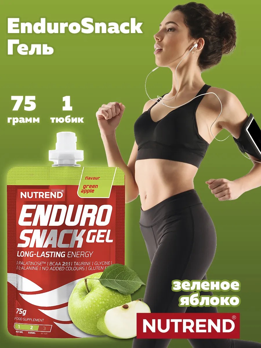 Nutrend Endurosnack – этот инновационный энергетический гель — идеальный источник энергии. Гелевые продукты можно использовать при тяжелых физических нагрузках с высокой частотой пульса, при которых человеческий организм не способен принимать твердую пищу. Основным ингредиентом является изомальтулоза (Palatinose TM ), дисахарид, который постепенно высвобождает энергию. Nutrend Endurosnack обогащен таурином, L-карнозином, аминокислотами с разветвленной цепью (BCAA), а также глюкогенными аминокислотами, глицином и L-аланином. Новая формула этого продукта не содержит красителей, не содержит глютена и имеет гораздо лучший вкус. Nutrend Endurosnack предназначен для: непрерывного и длительного энергоснабжения организма. Энергоснабжение до и во время выступления.