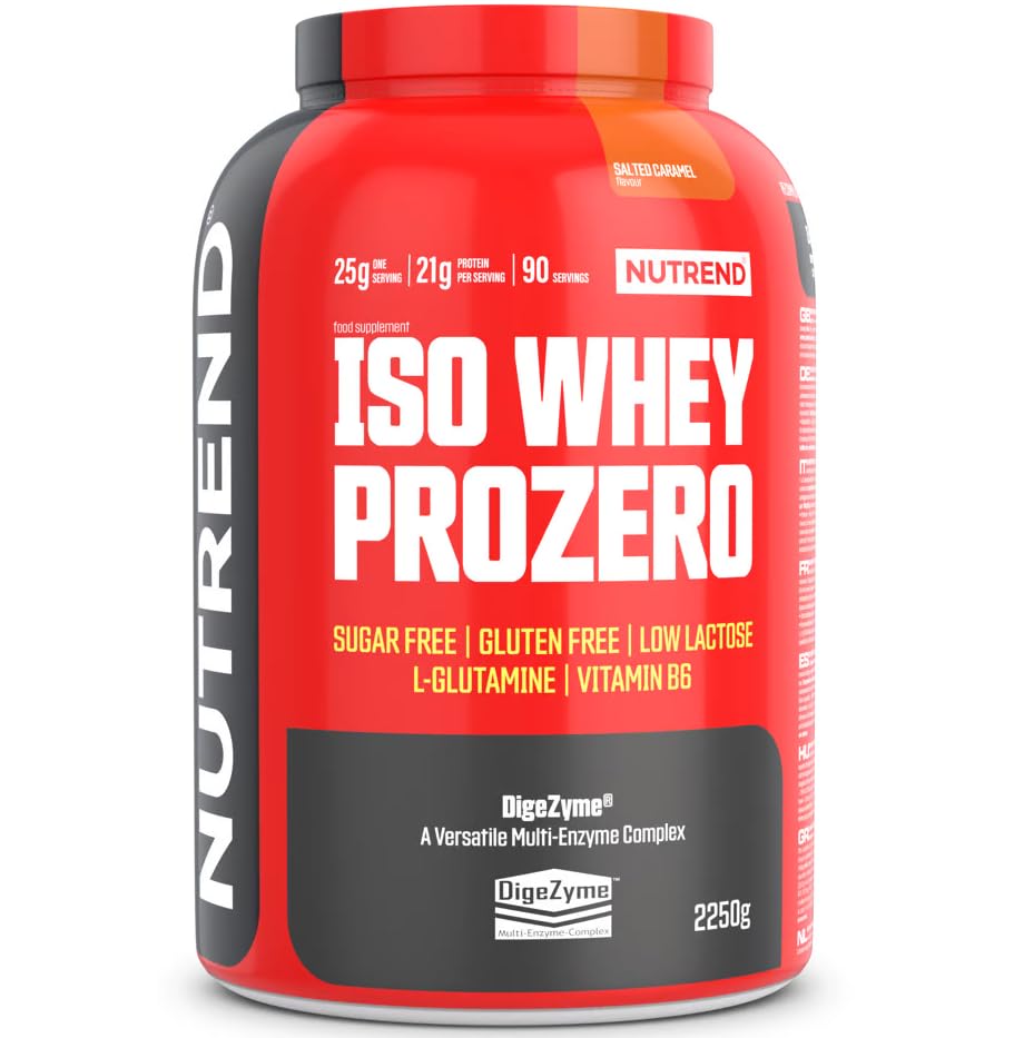 NUTREND ISO Whey Prozero is the perfect supplement for anyone seeking a healthy and balanced diet. Thanks to innovative CFM technology, the pure whey protein isolate is gently produced and therefore contains no added sugar. This premium protein provides your body with essential nutrients and effectively supports muscle growth and post-workout recovery. Due to its high bioavailability, the protein is quickly absorbed and optimally utilized. NUTREND whey protein isolate is also particularly easy to digest and therefore suitable for people with sensitive stomachs. Let yourself be convinced by the superior quality and positive effects of this product – order your NUTREND ISO Whey Prozero now! INGREDIENTS Ingredients Iso Whey ProZero Salted Caramel: - Whey protein isolate (contains soy lecithin) - L-glutamine - Whole milk powder - Flavoring - Sodium chloride - Color: caramel - Thickening agent: xanthan gum - Anti-caking agent: silicon dioxide - Digezyme digestive enzymes (amylase, protease, lactase, lipase, cellulase) - Sweeteners: sucralose and steviol glycosides - Pyridoxine hydrochloride This product is not intended to diagnose, treat, or prevent any disease. SAFETY WARNING Food supplements are not a substitute for a balanced and varied diet. Do not exceed the recommended intake. Keep food supplements out of reach of children. Maintain a healthy, balanced, and varied diet and lifestyle. See more