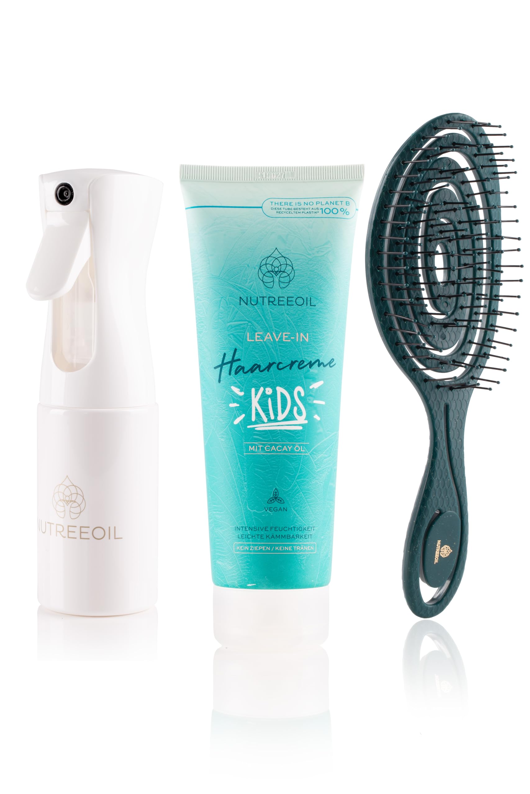 NUTREEOIL Haarpflege Geschenkset für Kinder | Set mit 3 hochwertigen Pflegeprodukten als Geschenk | Feuchtigkeitspflege für alle Haartypen NUTREEOIL Leave-In Haarpflege Set Kids