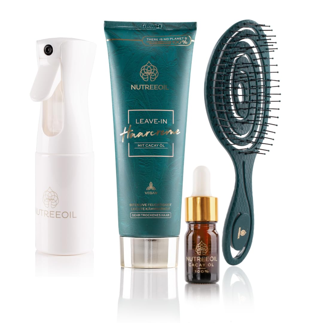 NUTREEOIL Haarpflege Geschenkset für Frauen | Set mit 4 hochwertigen Pflegeprodukten als Geschenk | Feuchtigkeitspflege für alle Haartypen NUTREEOIL Leave-In Haarpflege Set