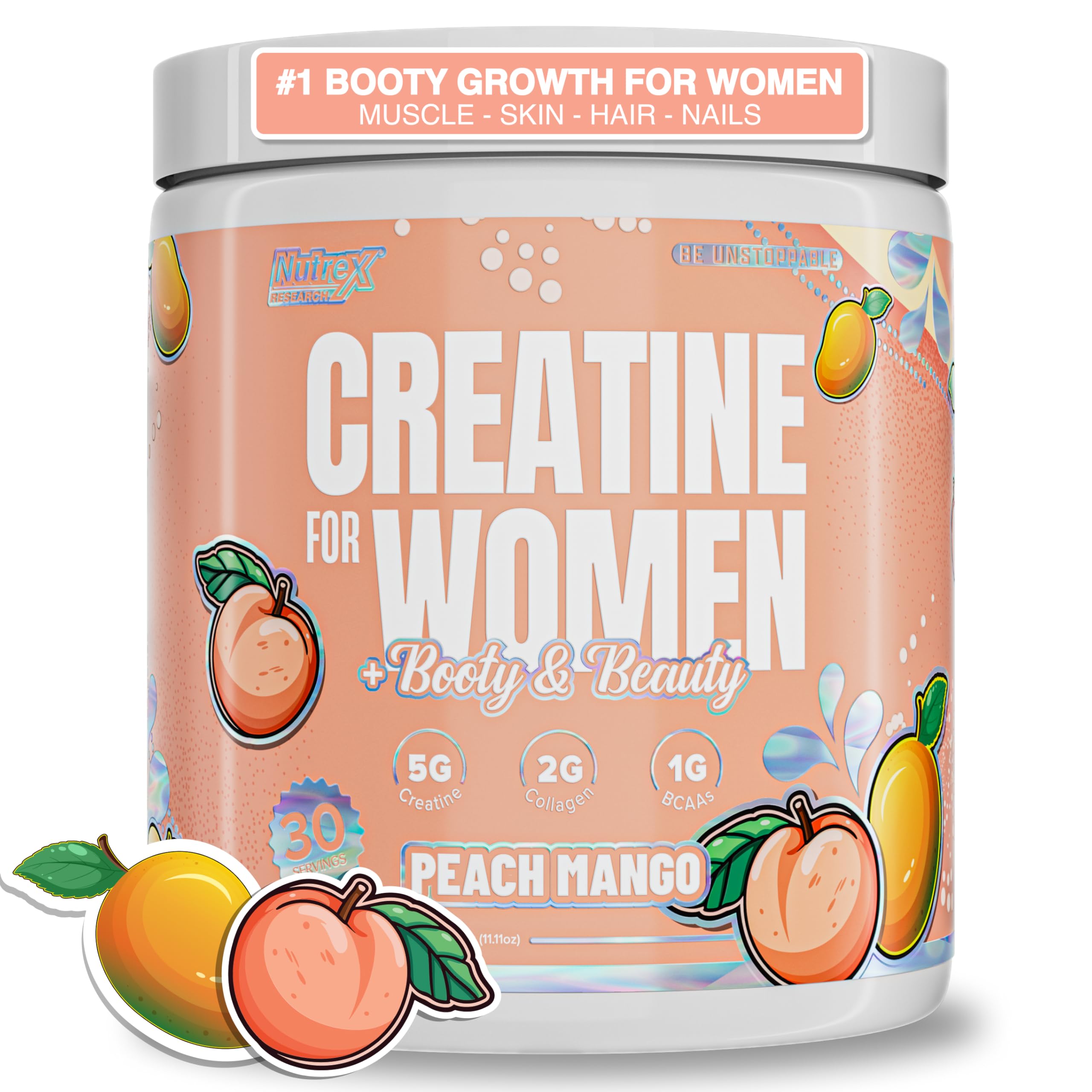 Nutrex Research Creatine for Women Booty & Beauty Peach Manago | 5g Creatine, 2g Collagen, BCAAs & Hyaluronic Acid for Glutes, Strength & Skin | Gluten Free, 30 Servings Peach Mango 13 Ounce (Pack of 1)