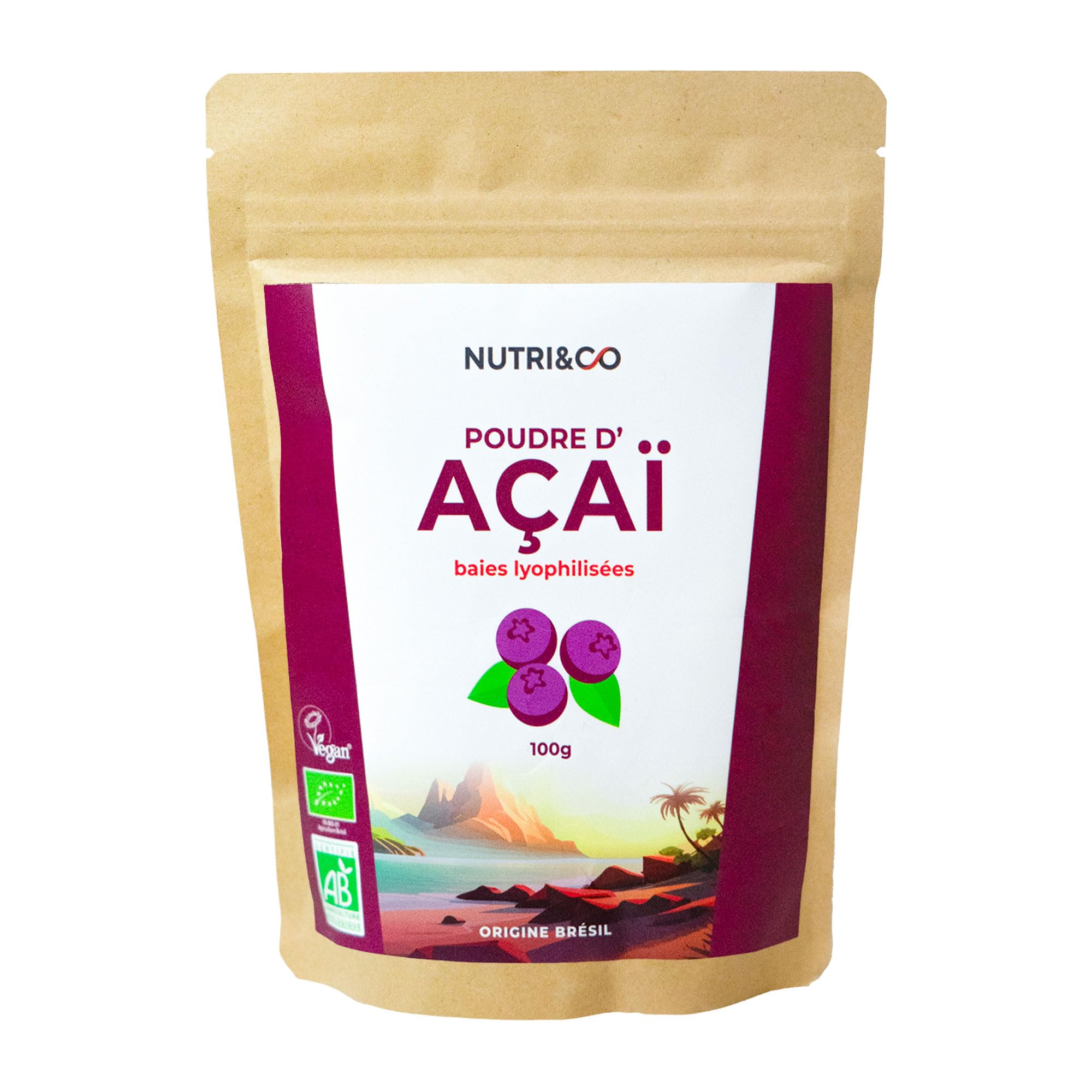 NUTRI CO TRANSPARENCY - Our Acai Powder is packaged by Dozett in Carpentras, France. It comes from Brazil, supplied by the Brazilian-Belgian company ia Bio. Gluten-free, gelatin-free, free of additives, sweeteners, or controversial excipients, and certified vegan. SCAN THE QR CODE - With a simple scan, you'll have access to your personalized dosage, the complete instructions for use of our product, our expert advice, and an interactive map of the ingredients' origins. In addition, a fun infographic is available to help you understand everything about our Acai Powder. Commitment to sustainability: Our acai berries come from passionate farmers in Brazil, who harvest the fruit by hand under optimal conditions. By supporting local communities and preserving biodiversity, we contribute to a sustainable and forest-friendly economic model. This product is B Corp certified for its social and environmental responsibility. Boost your recipes with acai: Add acai powder to your smoothies, bowls, or yogurts for a fruity touch and a nutritional boost. Perfect for enriching your dishes, it pairs well with fresh fruit, nuts, or seeds. Easy to incorporate into your daily diet, it allows you to vary your recipes while enjoying its antioxidant qualities. ? Cardiovascular Health and Natural Energy: Known for its antioxidant properties, with a high concentration of anthocyanins, contributing to heart and cognitive health, acai helps strengthen the immune system, reduce fatigue, and support muscles. With its essential fatty acids and its ability to improve iron absorption, it's a true ally for a balanced diet.LA TRANSPARENCE NUTRI CO - Notre Poudre d'Acaï est conditionnée par l'entreprise Dozett à Carpentras, en France. Elle provient du Brésil, fournie par la société brésilienne-belge ia Bio. Sans Gluten, Sans Gélatine, Sans Additifs, Édulcorants ou Excipients Controversées et Certifiée Vegan. SCANNEZ LE QR CODE - Vous aurez accès d'un simple geste à votre posologie personnalisée, à la notice d'utilisation complète de notre produit, à nos conseils d'experts et à la carte interactive de l'origine des ingrédients. De plus, une infographie ludique est disponible pour tout comprendre sur notre Poudre d'Açaï. Engagement pour la durabilité : Nos baies d'açaï proviennent d'agriculteurs passionnés du Brésil, qui récoltent les fruits à la main dans des conditions optimales. En soutenant les communautés locales et en préservant la biodiversité, nous contribuons à un modèle économique durable et respectueux des forêts. Ce produit est certifié B Corp pour sa responsabilité sociale et environnementale. Boostez vos recettes avec l'açaï : Ajoutez la poudre d'açaï à vos smoothies, bowls ou yaourts pour une touche fruitée et un apport nutritionnel. Parfaite pour enrichir vos préparations, elle se marie bien avec des fruits frais, des noix ou des graines. Facile à intégrer dans votre alimentation quotidienne, elle vous permet de varier vos recettes tout en profitant de ses qualités antioxydantes. ? Santé cardiovasculaire et Énergie Naturelle : Reconnu pour ses propriétés antioxydantes, avec une forte concentration d'anthocyanines, contribuant à la santé cardiaque et cognitive, l'açaï aide à renforcer le système immunitaire, à réduire la fatigue et soutient les muscles. Avec ses acides gras essentiels et sa capacité à améliorer l'absorption du fer, c'est un véritable allié pour une alimentation équilibrée.NUTRI CO Açaï BIO en Poudre 100g - Naturellement Riche en Antioxydants, Vitamine C Oméga 9 - Issue de l'Agriculture Durable et Équitable en ie - Superaliment Lyophilisée Bio et Vegan