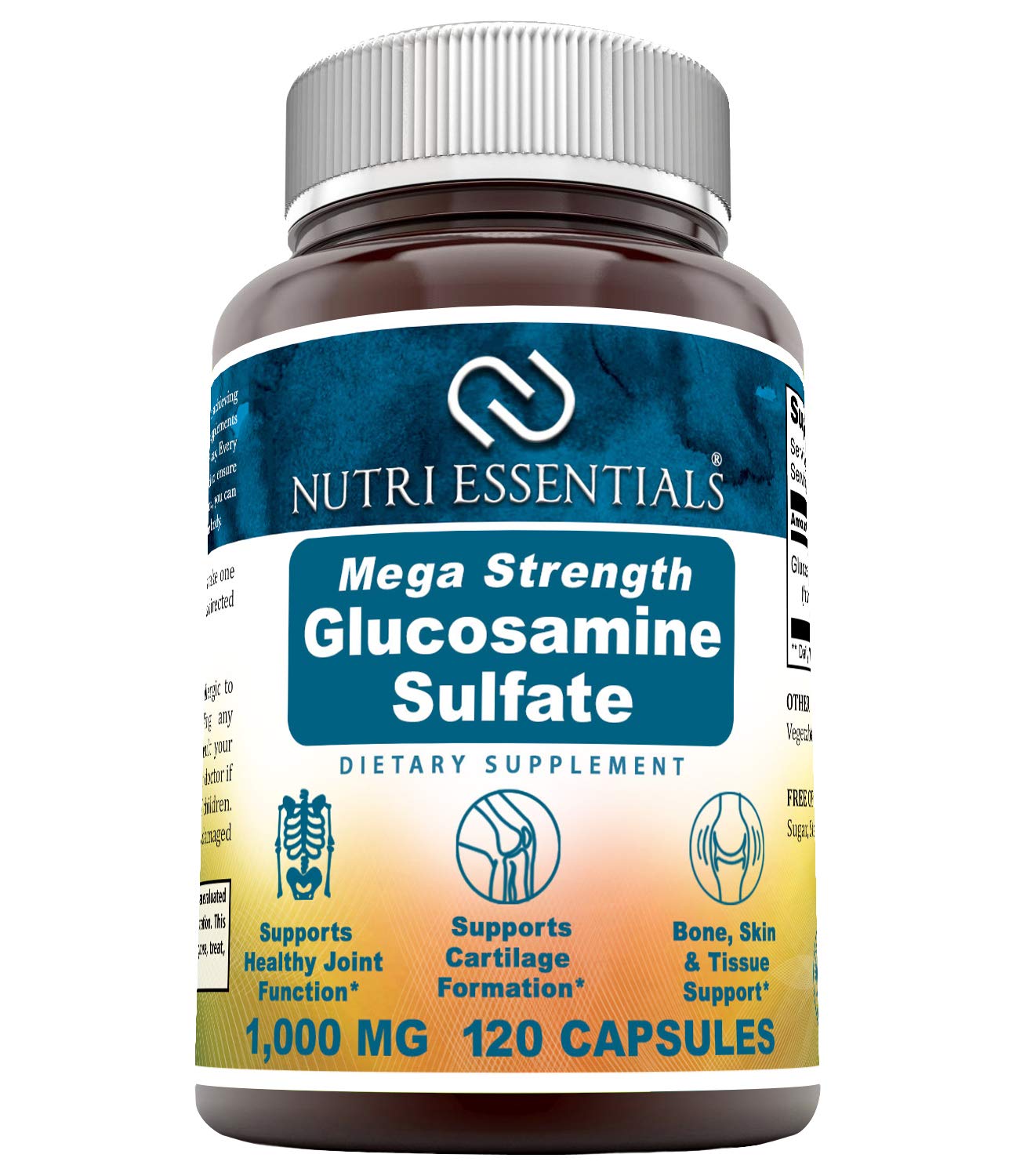 EASY TO FIT INTO ANY HEALTHY DIET Our Glucosamine Sulfate Supplement Contains No Gluten, Sugar, Starch, Milk, Lactose, Soy, Wheat, Yeast or Sodium. MADE IN THE USA You Can Trust the Quality of Nutri Essentials Glucosamine Supplement Because It's Manufactured Exclusively in A GMP Certified Facility in The United States!. EASY TO TAKE Just One of Our Glucosamine Sulfate 1000mg Capsules Gives You the Most Recommended Dosage for Potential Relief from Joint Pain Inflammation Related Pains. A TRUSTED FORM Glucosamine Sulfate Has Been Widely Studied for It Benefits in Joint Pain and Inflammation Related Problems. MEGA STRENGTH Each of Our Glucosamine Sulfate Mega Strength Capsules Contains High Potency Glucosamine Sulfate for better effectiveness.