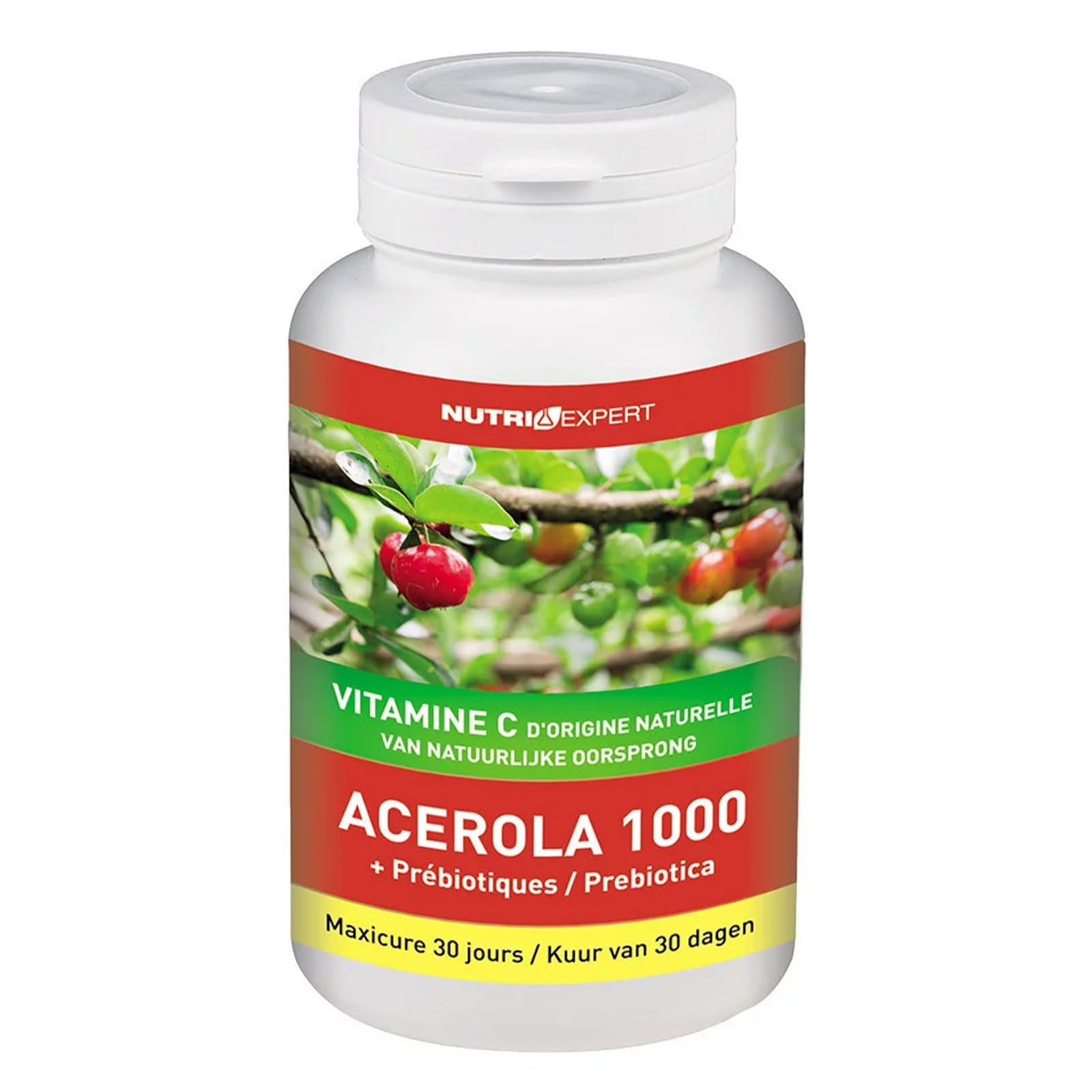 NUTRI EXPERT - Acérola 1000 - Vitamine C d'origine naturelle - Réduit la fatigue - Soutient l'immunité - Sans Gluten - Cure 30 jours
