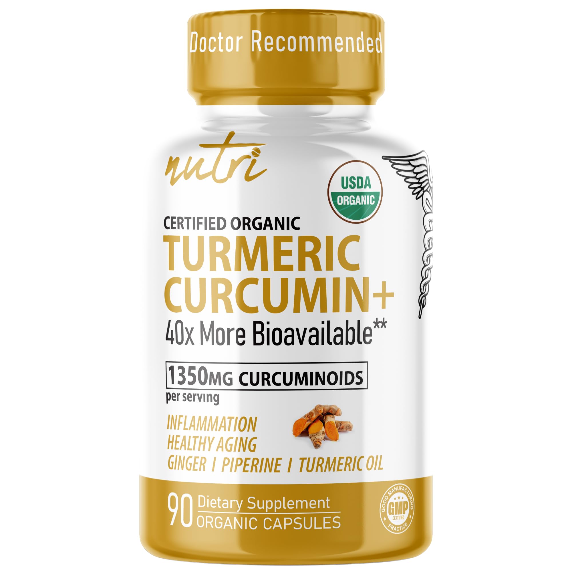 3RD PARTY LAB TESTED IN THE USA: We have our own GMP FDA registered Food-Grade facility in the USA. All our products are 3rd-Party tested to guarantee purity. Satisfaction Guaranteed: At Nutri we guarantee almost everything Forever. Please contact us for any refund or return issue as "does not allow" returns on supplements, but we do. USDA ORGANIC: Nutri Turmeric Curcumin is certified USDA Organic and only made from premium ingredients. At Nutri we believe in making the highest quality, and most effective products on the market so that you can be confident that you're getting the best of the best. ORGANIC TURMERIC OIL: Nutri's Turmeric Curcumin formulation is the only one on the market to include Turmeric Oil. Turmeric essential oil contains compounds called turmerones that enhance the absorption of curcuminoids in the body, ensuring you get the most out of every serving. 40X MORE BIOAVAILABLE: Nutri Turmeric Curcumin is specially formulated to include Organic Ginger Root Extract, Organic Black Pepper Extract (Piperine), and Organic Turmeric Oil to maximize the overall absorption of curcuminoids in your body. 1425MG ORGANIC TURMERIC EXTRACT (Std. 95 Curcuminoids): Our Turmeric Curcumin is made purely from Organic Turmeric Extract providing 1350mg of Curcuminoids unlike other products that include only a small portion of true extract, mixed in with Turmeric Powder.