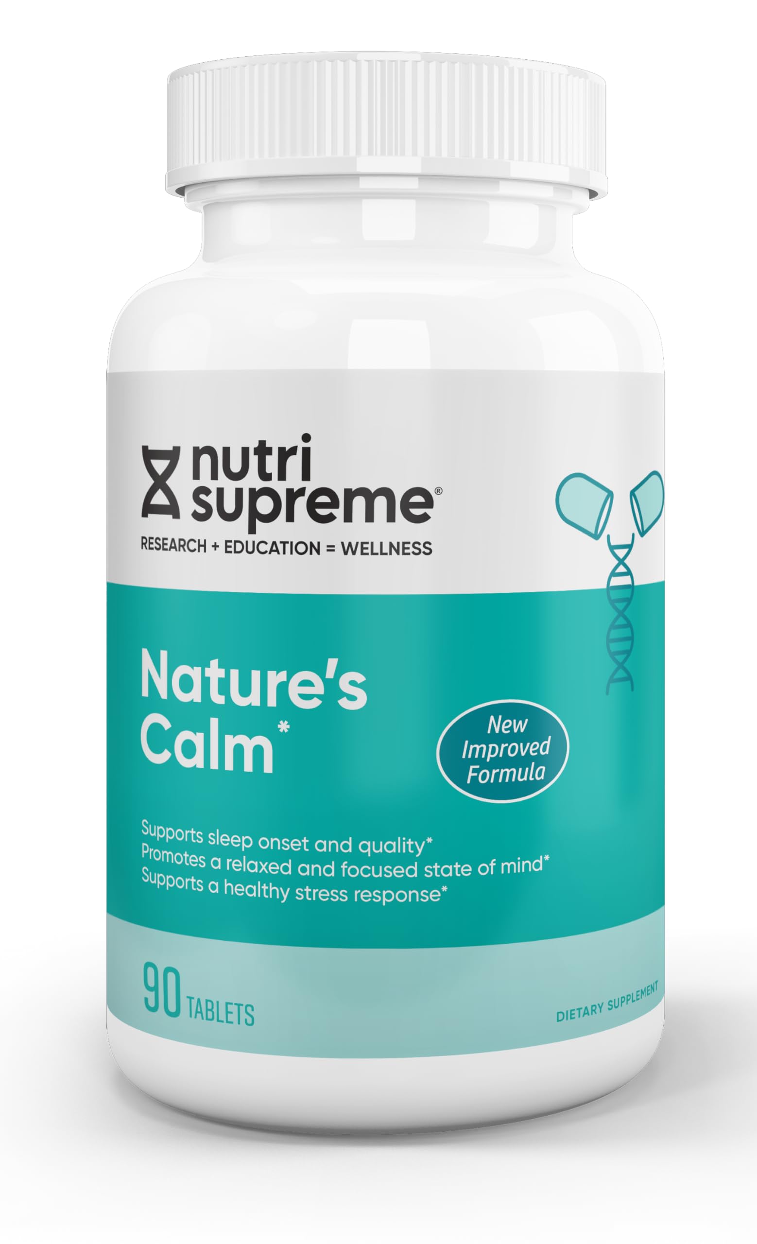 NUTRI-SUPREME RESEARCH Calm Tablets: Nature's Calm Dietary Supplement - Natural Relief of Stress Anxiousness Nervousness Sleeplessness and Irritability and Improved Sleep - 90 Tablets