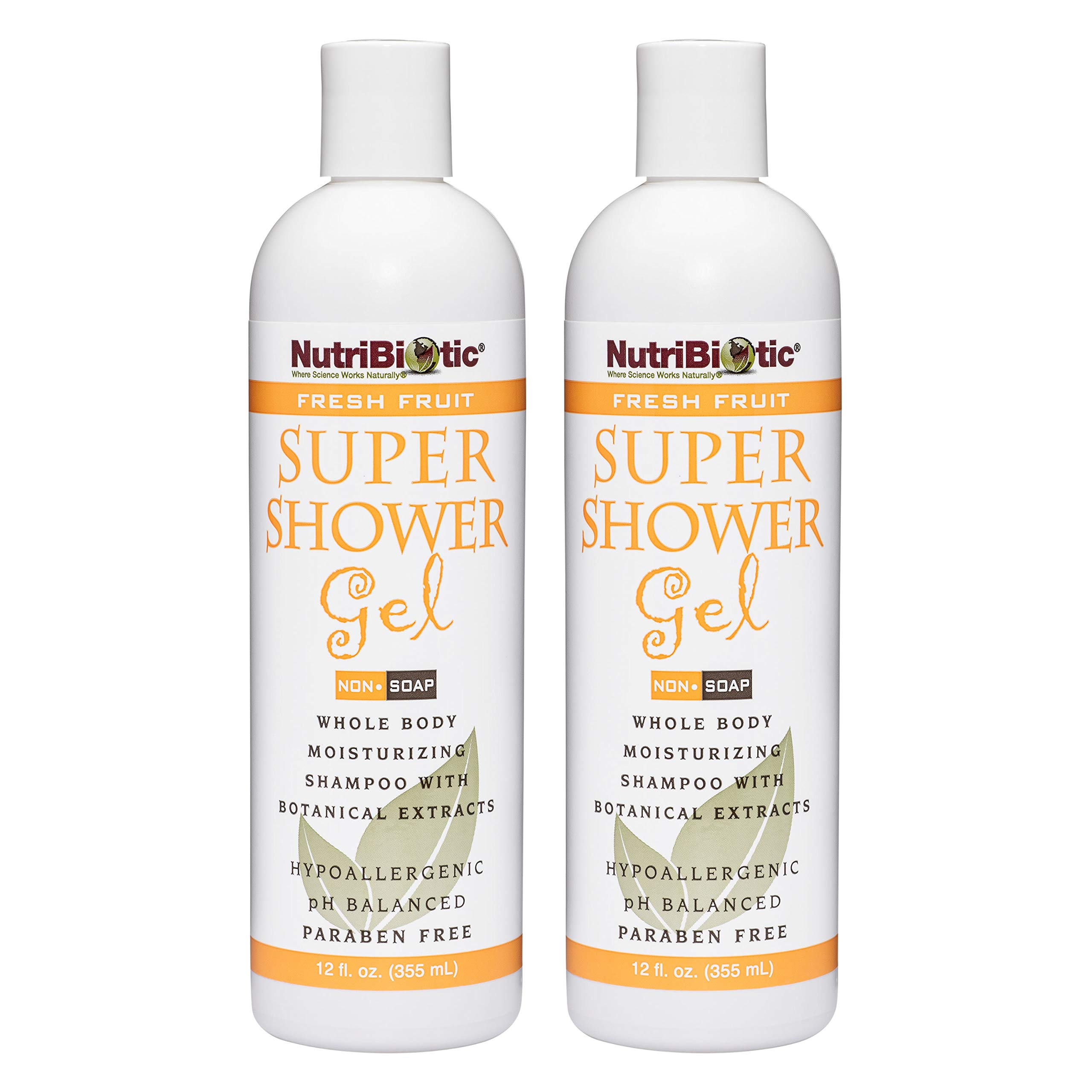 NutriBiotic Fresh Fruit Super Shower Gel 12 Oz Twin Pack | Whole Body Moisturizing Shampoo with GSE & Botanical Extracts | pH Balanced & Free of Gluten Parabens Sulfates Dyes & Colorings
