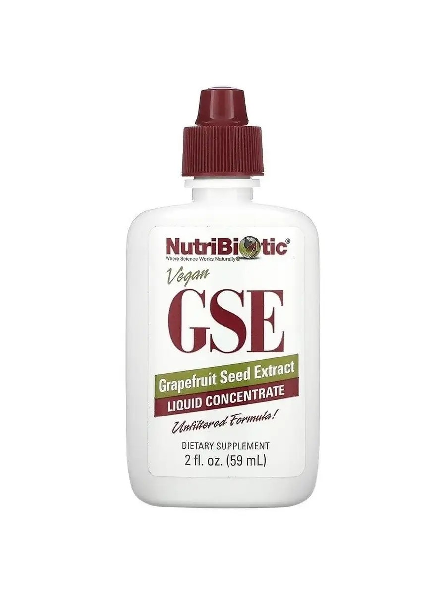 Жидкий концентрат NutriBiotic GSE имеет натуральный состав, полученный из семян и мякоти грейпфрута. Эта формула используется специалистами в сфере здравоохранения во всем мире.