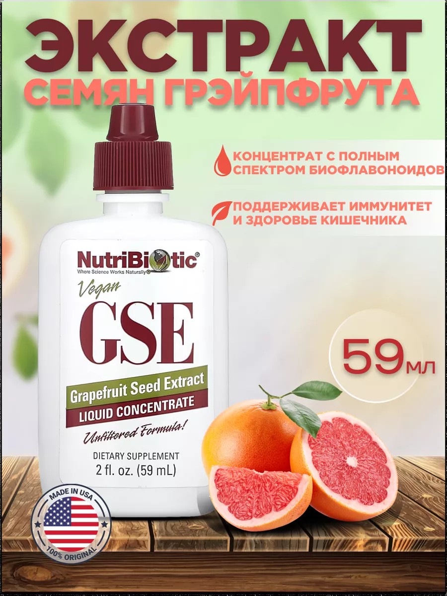 Экстракт семян грейпфрута GSE нетоксичный антимикробный продукт широкого спектра применения. GSE бад способен убивать или подавлять рост большой массы потенциально вредных бактерий, грибков, вирусов и одноклеточных паразитов. В первую очень nutribiotic gse помогает при простуде, гриппе, кандиде, и также является универсальным противопаразитным средством. Это натуральным антибиотик с высокой эффективностью от многих бактерий. Жидкий концентрат gse грейпфрута имеет натуральный состав, полученный из семян и мякоти грейпфрута. Экстракт семян грейпфрута применение: взрослым смешать 10 капель жидкого концентрата в стакане воды или сока (не менее 150 мл). Принимать 1-3 раза в день независимо от приема пищи. Детям старше 5 лет смешать, gse grapefruit, 3 капли в стакане воды или сока, принимать 1-2 раза в день. Не берите в рот экстракт семян косточки грейпфрута в неразбавленном виде.