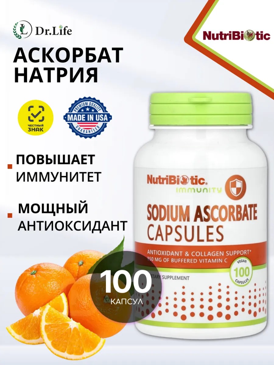 Капсулы NutriBiotic с аскорбатом натрия содержат 850 мг 100% витамина C фармацевтической степени чистоты и 100 мг натрия в простой и удобной форме.