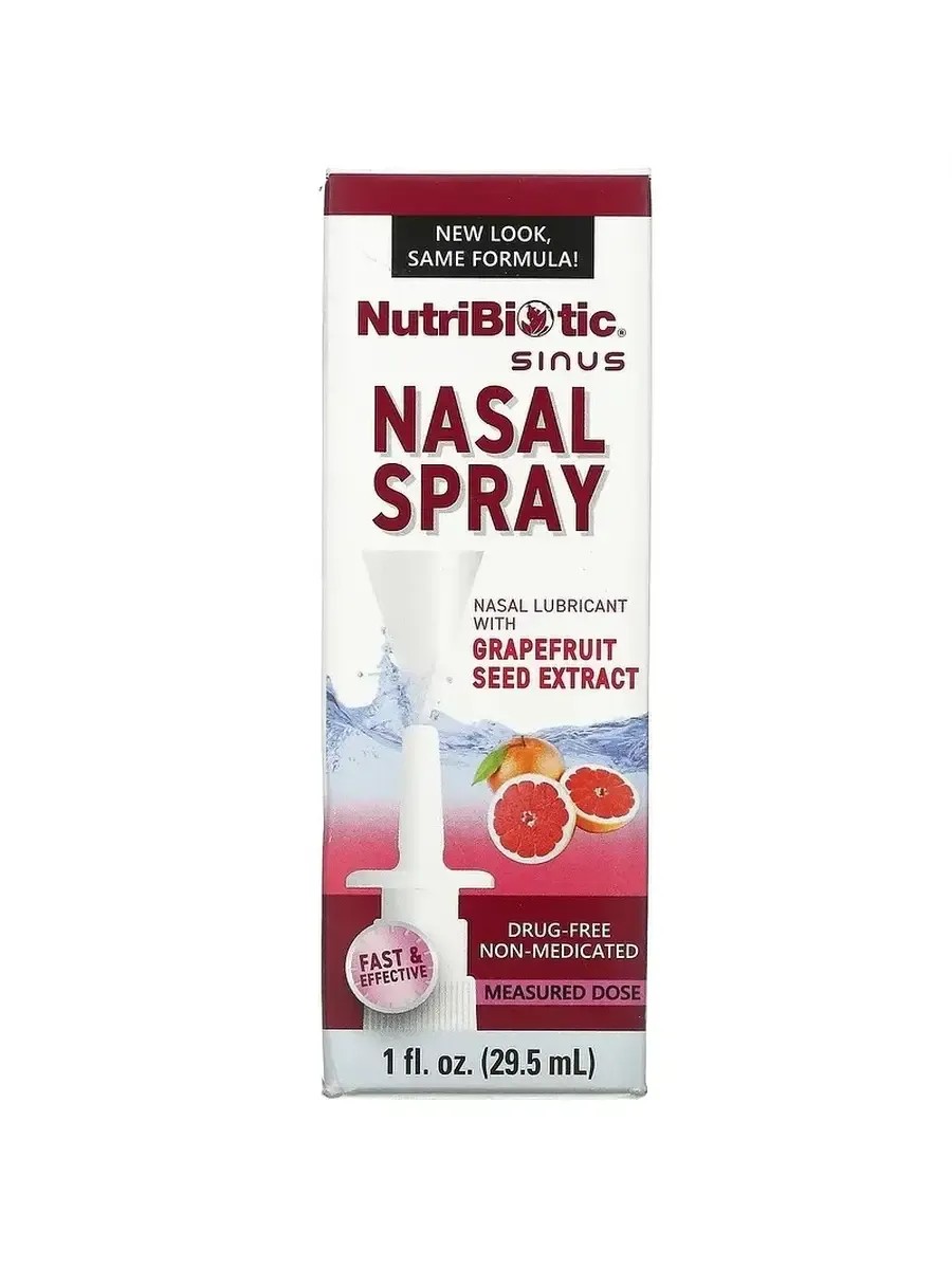 Назальный спрей NutriBiotic — это отличное средство для носа, содержащая экстракт семян грейпфрута и хлорид натрия в виде удобного спрея с дозатором.