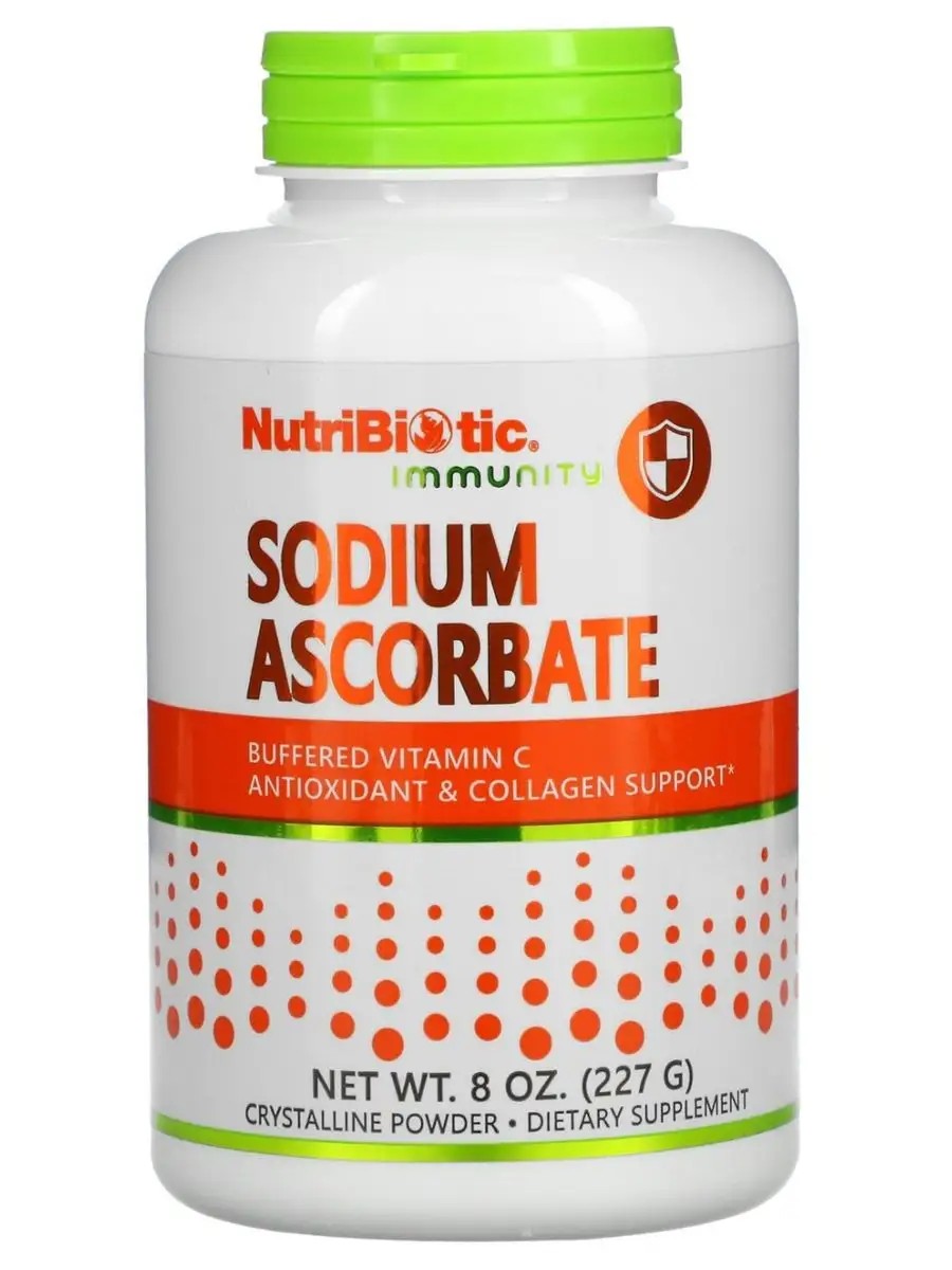 Хорошо растворимый аскорбат натрия NutriBiotic— это не имеющий горького привкуса, некислый буферный кристаллический порошок, содержащий 100%-ный витамин C (L-аскорбиновую кислоту) фармацевтической степени чистоты и натрий в хорошо растворимой форме.