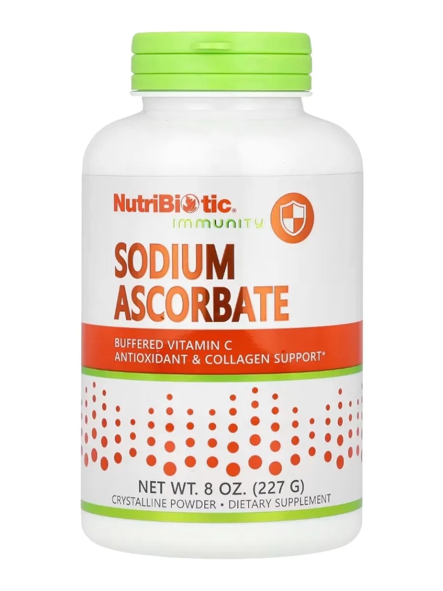 NutriBiotic Sodium Ascorbate is a non-bitter, non-acidic, buffered crystalline powder containing 100% pharmaceutical-grade vitamin C (L-ascorbic acid) and sodium in a highly soluble form.