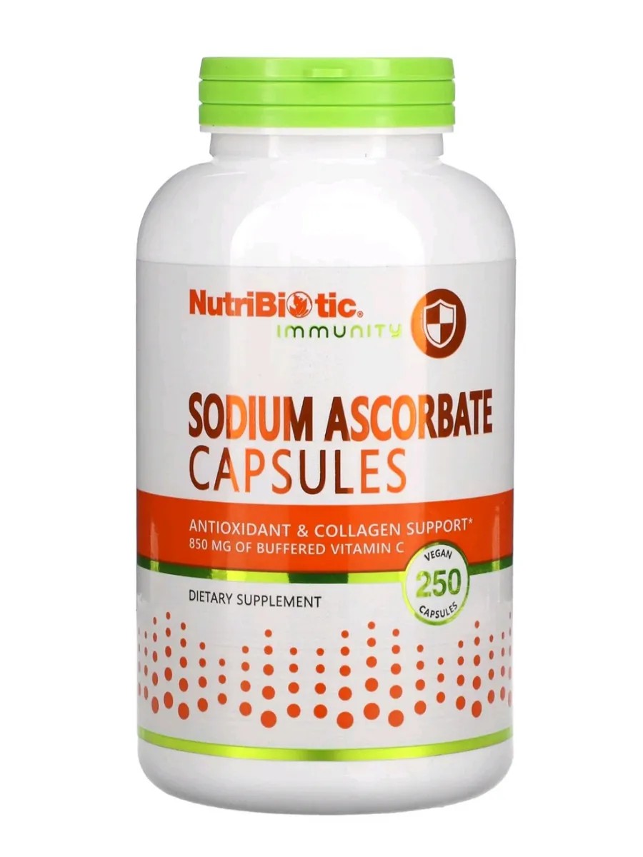 Капсулы NutriBiotic с аскорбатом натрия содержат 850 мг 100% витамина C фармацевтической степени чистоты и 100 мг натрия в простой и удобной форме.