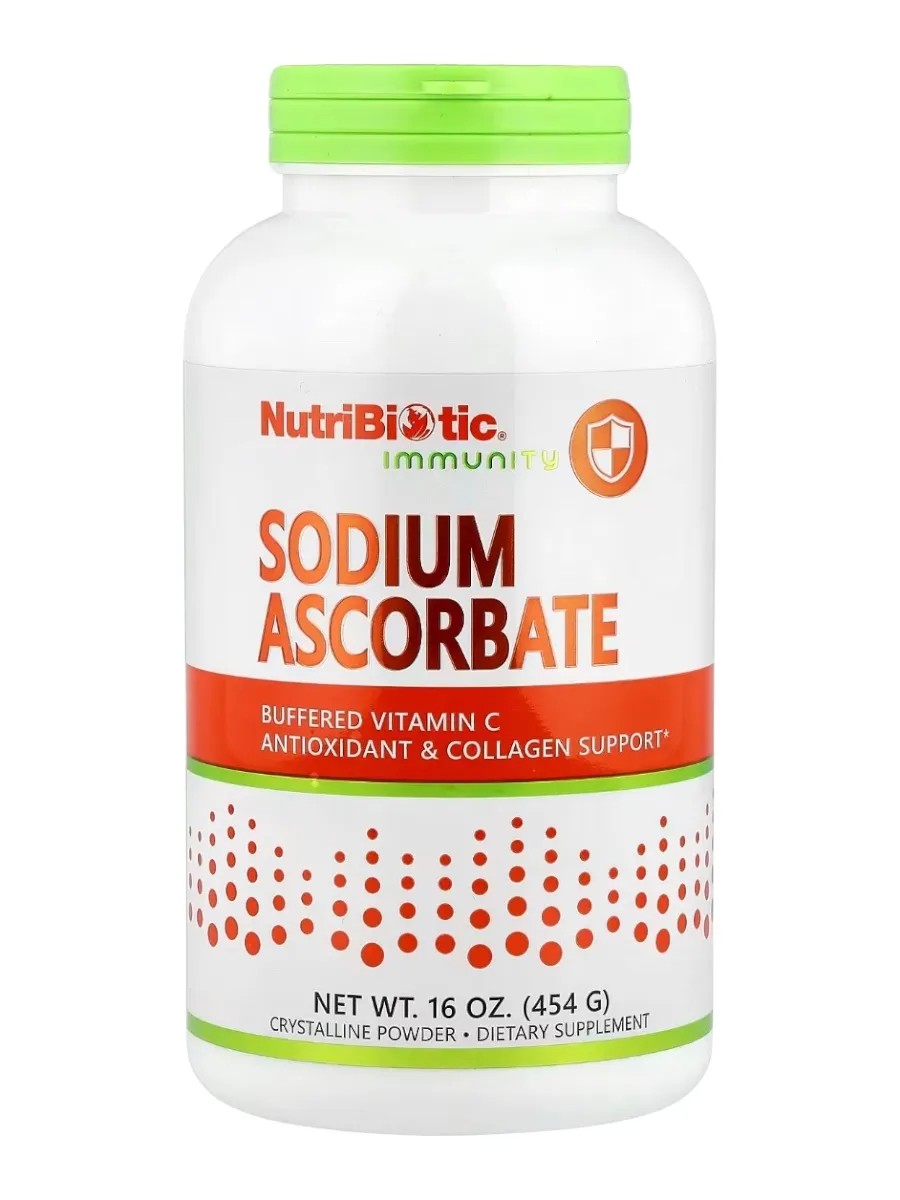 NutriBiotic Sodium Ascorbate is a non-bitter, non-acidic, buffered crystalline powder containing 100% pharmaceutical-grade vitamin C (L-ascorbic acid) and sodium in a highly soluble form.