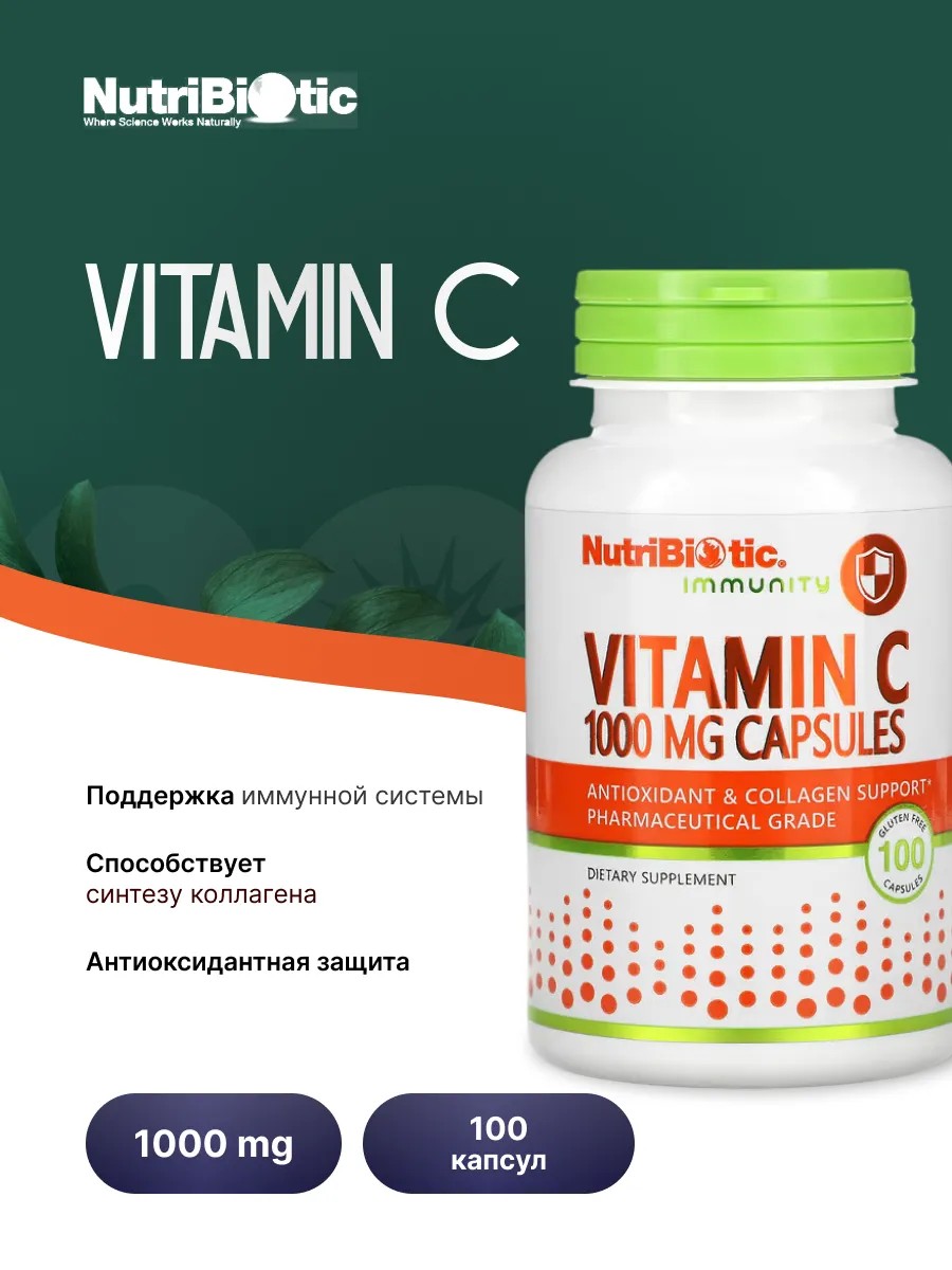 NutriBiotic Vitamin C 1000 mg Capsules — это мощная добавка, содержащая 1000 мг высококачественного витамина C в каждой капсуле. В упаковке 100 капсул, что обеспечивает длительное использование и удобство.