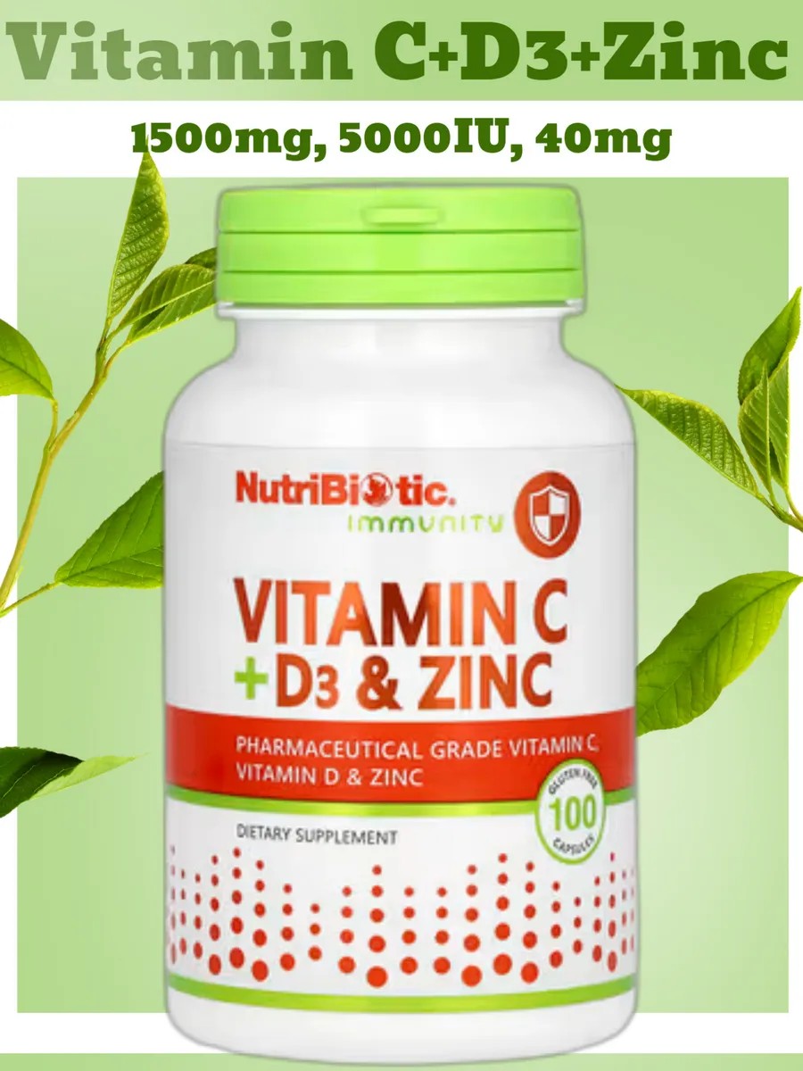 Капсулы NutriBiotic с витаминами C, D3 и цинком снабжают организм витаминами С и D и цинком фармацевтической степени чистоты — необходимыми питательными веществами.