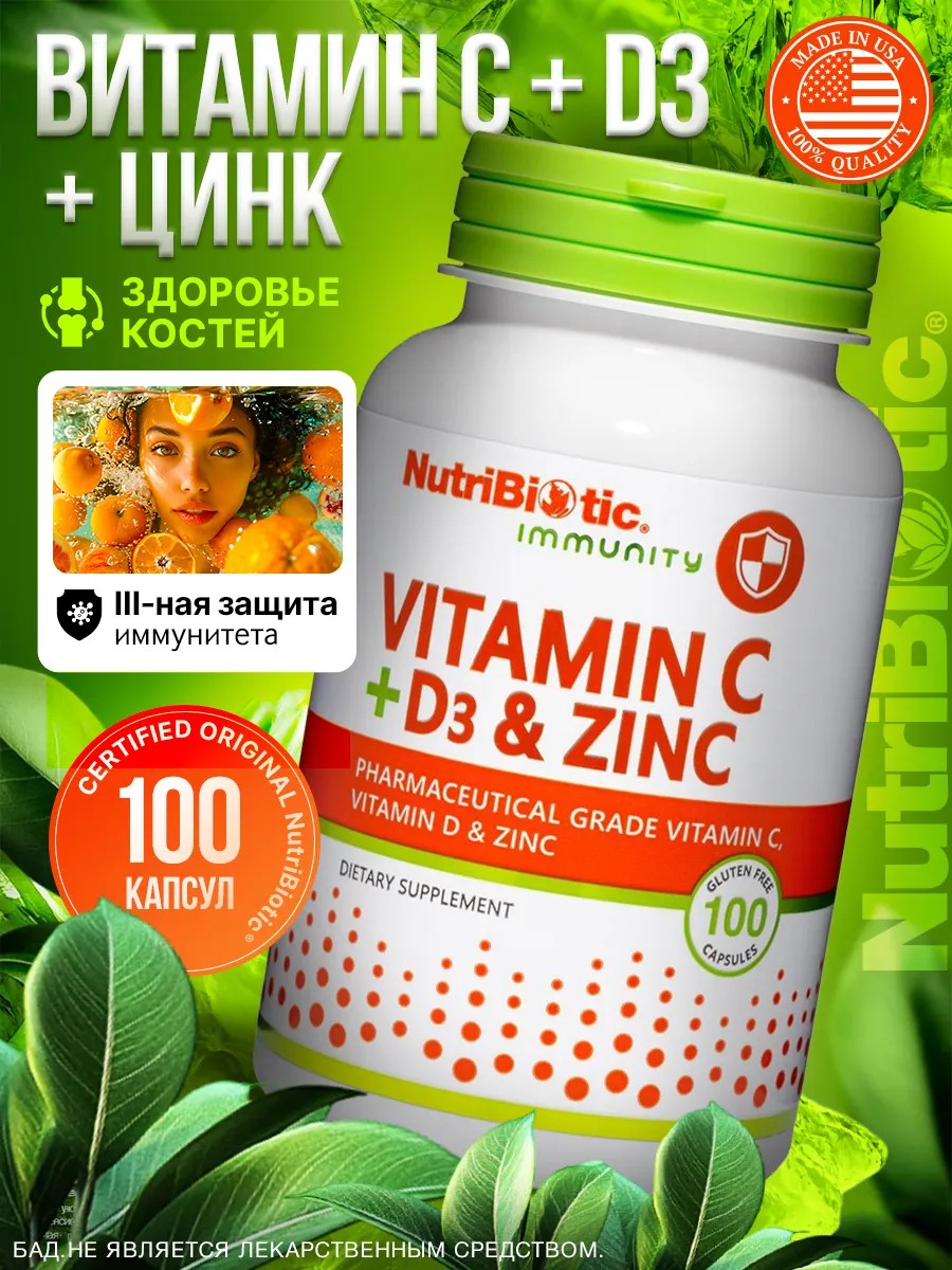 Капсулы NutriBiotic с витаминами C, D3 и цинком снабжают организм витаминами С и D и цинком фармацевтической степени чистоты — необходимыми питательными веществами.