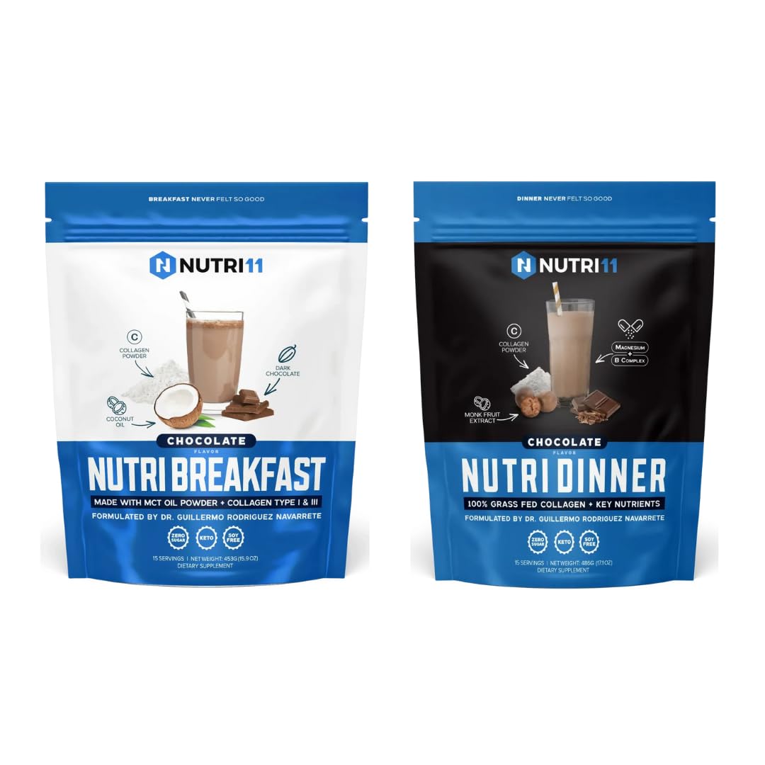 NutriBreakfast & NutriDinner by Nutrillermo | Chocolate Collagen Bundle | Grass-Fed Collagen with MCT Oil Magnesium & B-Vitamins
