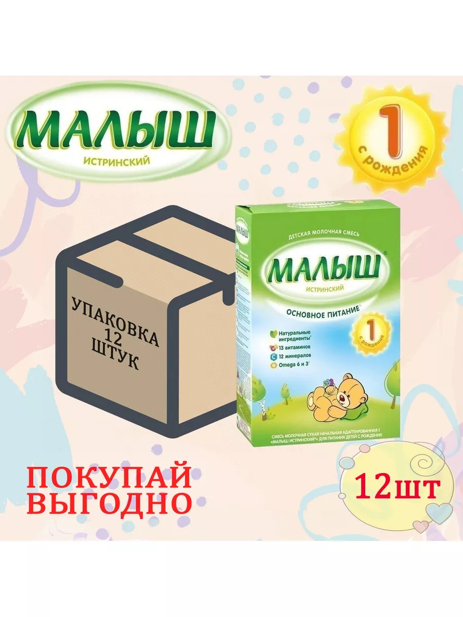 Смесь Малыш Истринский (Nutricia) 1 основное питание, с рождения, 12 ШТУК 1 УПАКОВКА ПО 350 г Смесь молочная сухая начальная адаптированная 1 "Малыш Истринский" для питания детей с рождения. Основное питание. 16 витаминов. 11 минералов. Натуральные ингредиенты. Омега 6/ Омега 3. Полезно малышу - доступно маме!. С появлением малыша в семье Ваша жизнь наполнилась новыми эмоциями! Малыш удивляет и радует Вас каждый день. Чтобы Вы и Ваш кроха безмятежно наслаждались этим неповторимым периодом, важно позаботиться о здоровом росте и полноценном развитии малыша. Грудное молоко - идеальное питание в этот период, но если грудное вскармливание невозможно, Малыш 1 поможет позаботится о Вашем крохе. Ведь - это сбалансированная молочная смесь, созданная из натуральных ингредиентов и обогащенная тщательно подобранным витаминно-минеральным комплексом. Смесь содержит Омега 6/Омега 32 жирные кислоты, необходимые для здорового роста ребенка, источником которых являются рыбий жир и смесь растительных масел.