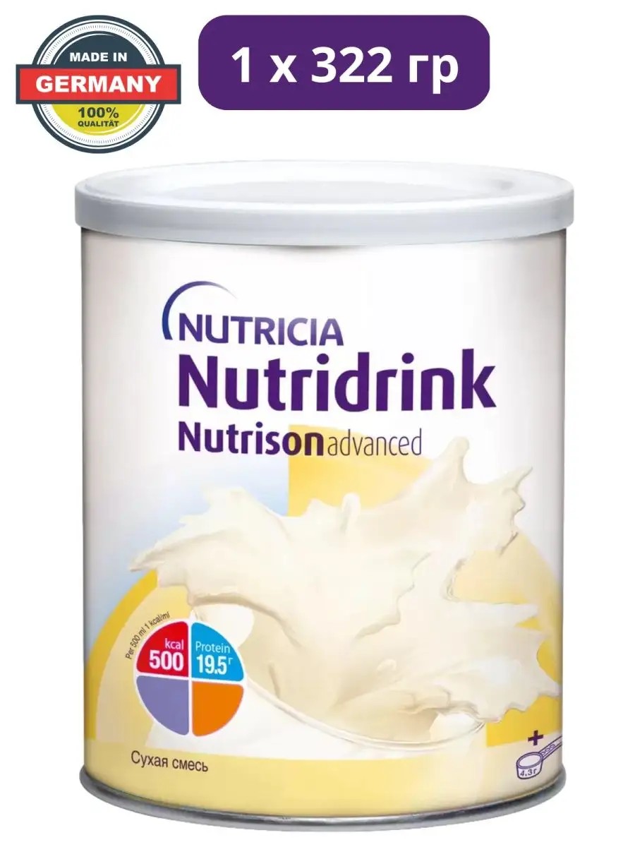 Nutridrink Nutrison Advanced, in a metal can, is a dry mixture for dietary therapeutic nutrition to meet the specific protein and energy needs of patients during treatment and rehabilitation. It is intended for enteral nutrition of patients capable of eating independently during rehabilitation after a stroke and other critical conditions, as well as during the preparation and recovery period after surgery. The mixture does not contain gluten, dietary fiber, or genetically modified components. It can be consumed orally, as a drink, or through a feeding tube. Release form: 322 g of dry powder in a metal can with a membrane and an outer closing lid - a measuring spoon for 4.3 g in each can.