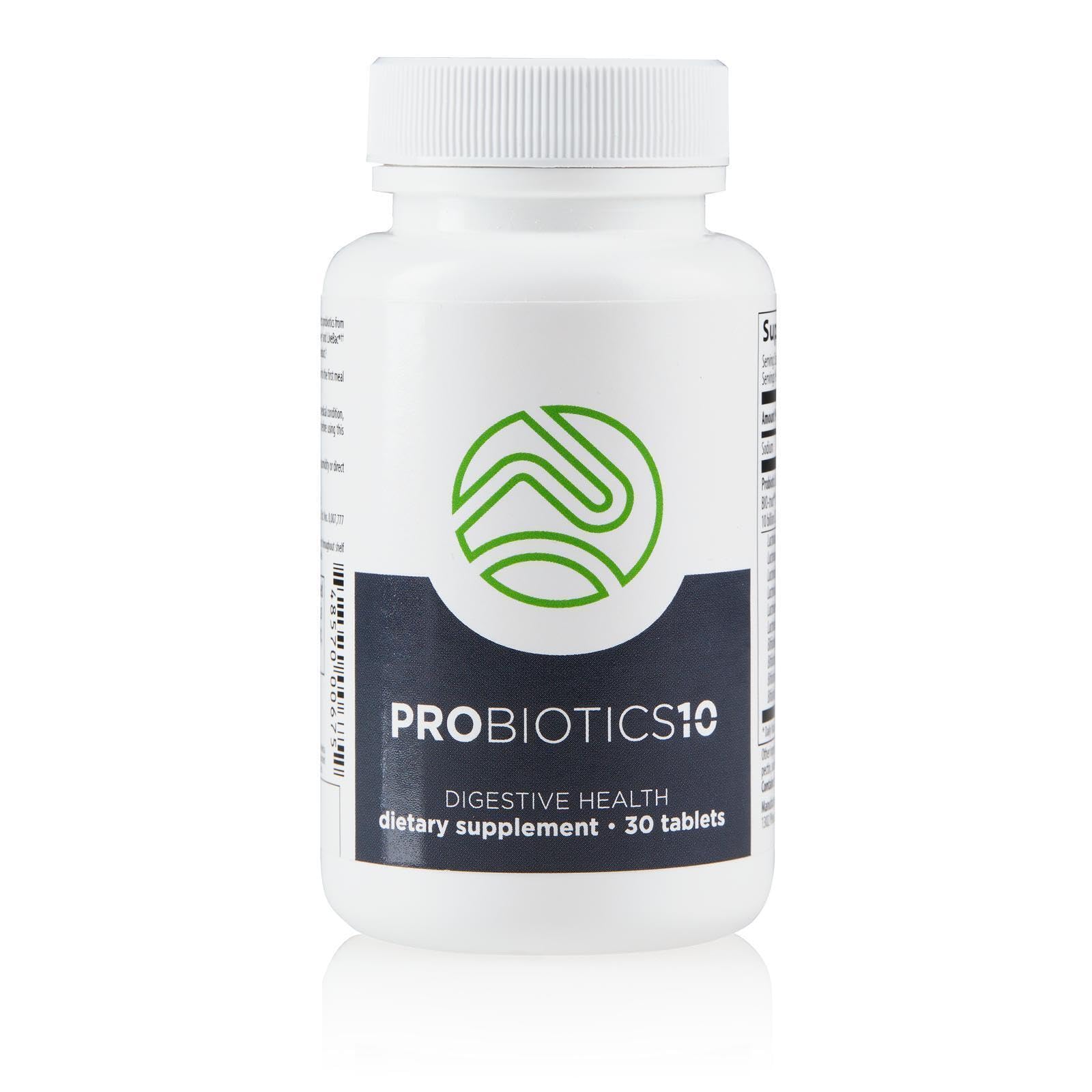Bring your gut back into balance with Probiotics-10, a once-daily probiotic delivering 10 complementary strains (10 billion CFU at time of manufacture) to support digestive comfort, regularity and immune health. A specialized controlled-release matrix helps the organisms survive harsh stomach acid so more reach your intestines alive—where they can do their best work. Why it works Broad-spectrum strains: Lactobacillus and Bifidobacterium species work together to support digestion, nutrient breakdown and a balanced microbiome. Targeted delivery: Acid-resistant, time-release technology protects probiotics in the stomach and releases them gradually in the intestines. Whole-body benefits: A balanced gut supports immune function, bowel regularity and general well-being as part of a healthy lifestyle. Suggested Use Take 1 tablet daily with water. Best taken consistently. Do not exceed suggested use. Safety Compliance Dietary supplement. Use only as directed. Keep out of reach of children. If pregnant, nursing, taking medication or have a medical condition, consult your healthcare professional before use.