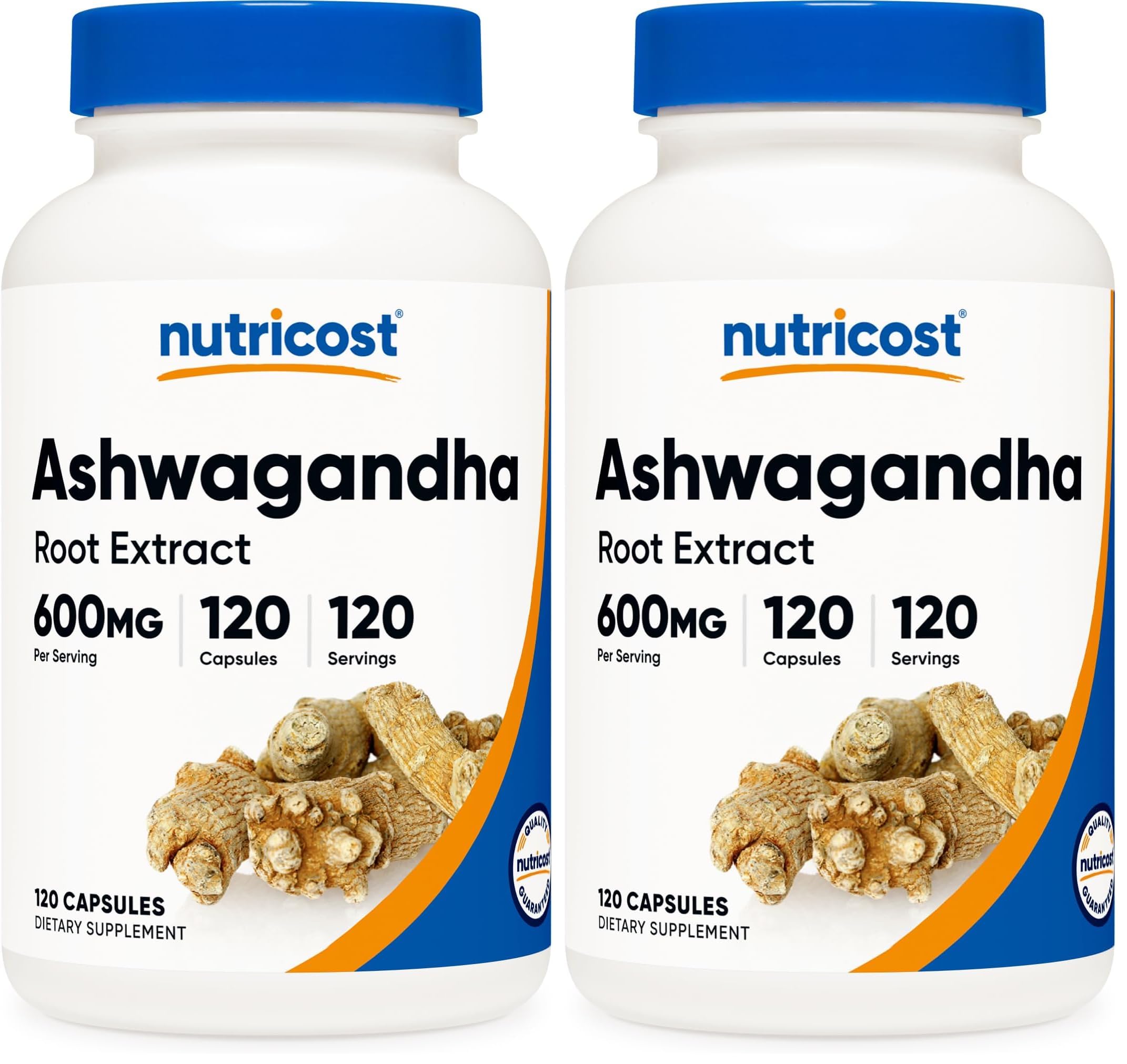 Nutricost Ashwagandha Herbal Supplement 600mg 120 Capsules - Vegetarian Non-GMO Gluten Free Ashwagandha Root (Pack of 2)