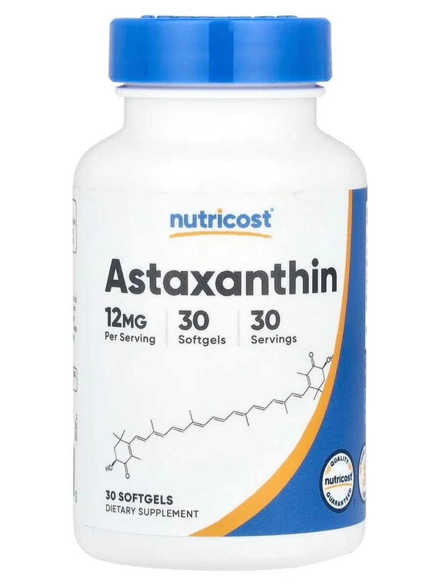 Astaxanthin from Nutricost is a high-quality nutritional product containing 12 mg of astaxanthin in each softgel. Astaxanthin is a powerful antioxidant naturally found in algae and fish. It helps protect cells from free radical damage and supports healthy eyes, skin, and cardiovascular health. Nutricost Astaxanthin is available in a convenient 30-capsule package, providing a month's supply. Add Astaxanthin to your diet and experience its health benefits.