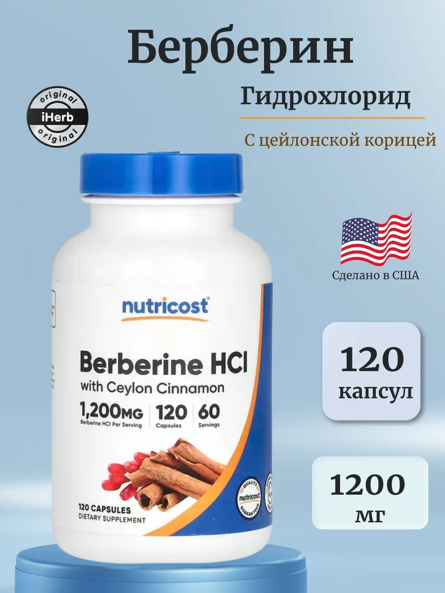 Nutricost Берберин гидрохлорид с цейлонской корицей 1200 мг 120 капсул