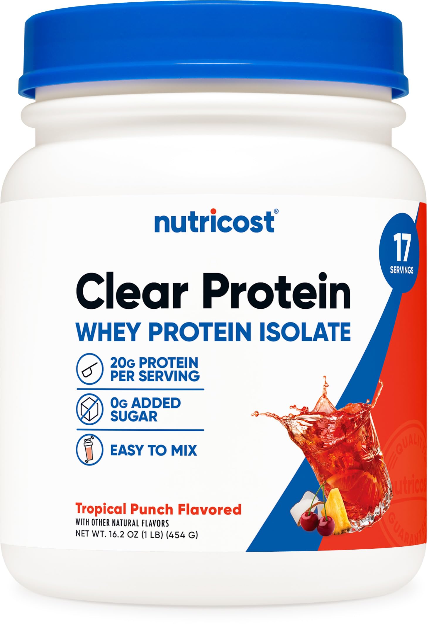 Nutricost Clear Whey Protein Isolate Powder (Tropical Punch) 1 LB - 20g of Protein, 0g Added Sugar, GMO-Free, Gluten-Free