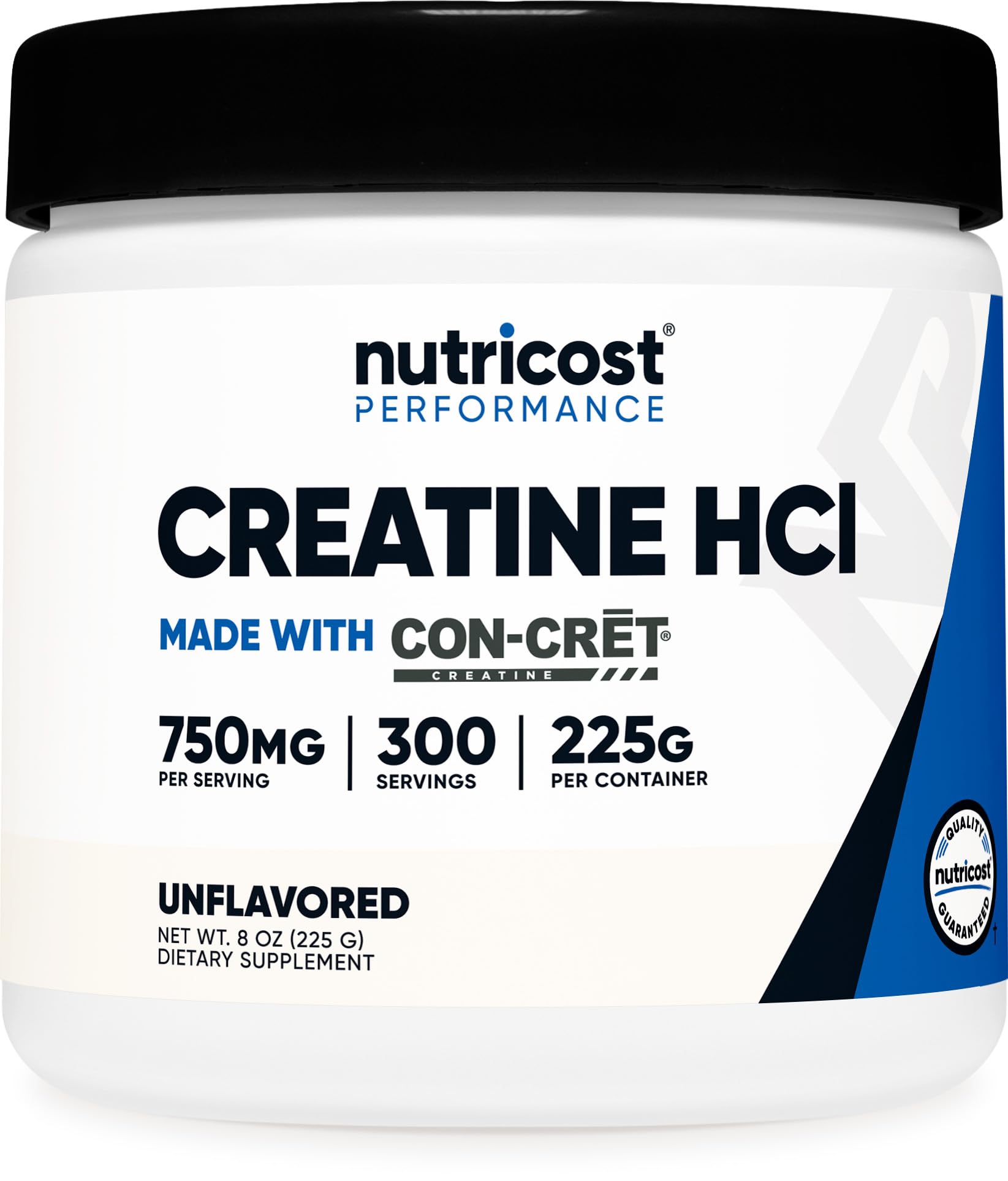 Manufactured in a NSF certified, GMP-compliant facility for quality and purity. This product is gluten-free, GMO-free, and made without unnecessary additives. Unflavored (No flavor added - It will have a natural sour flavor) Made with CON-CRET Creatine Hydrochloride. Each serving provides 750mg of pure Creatine HCl for convenient supplementation. Nutricost Creatine HCl contains 300 servings per bottle for a lasting supply.