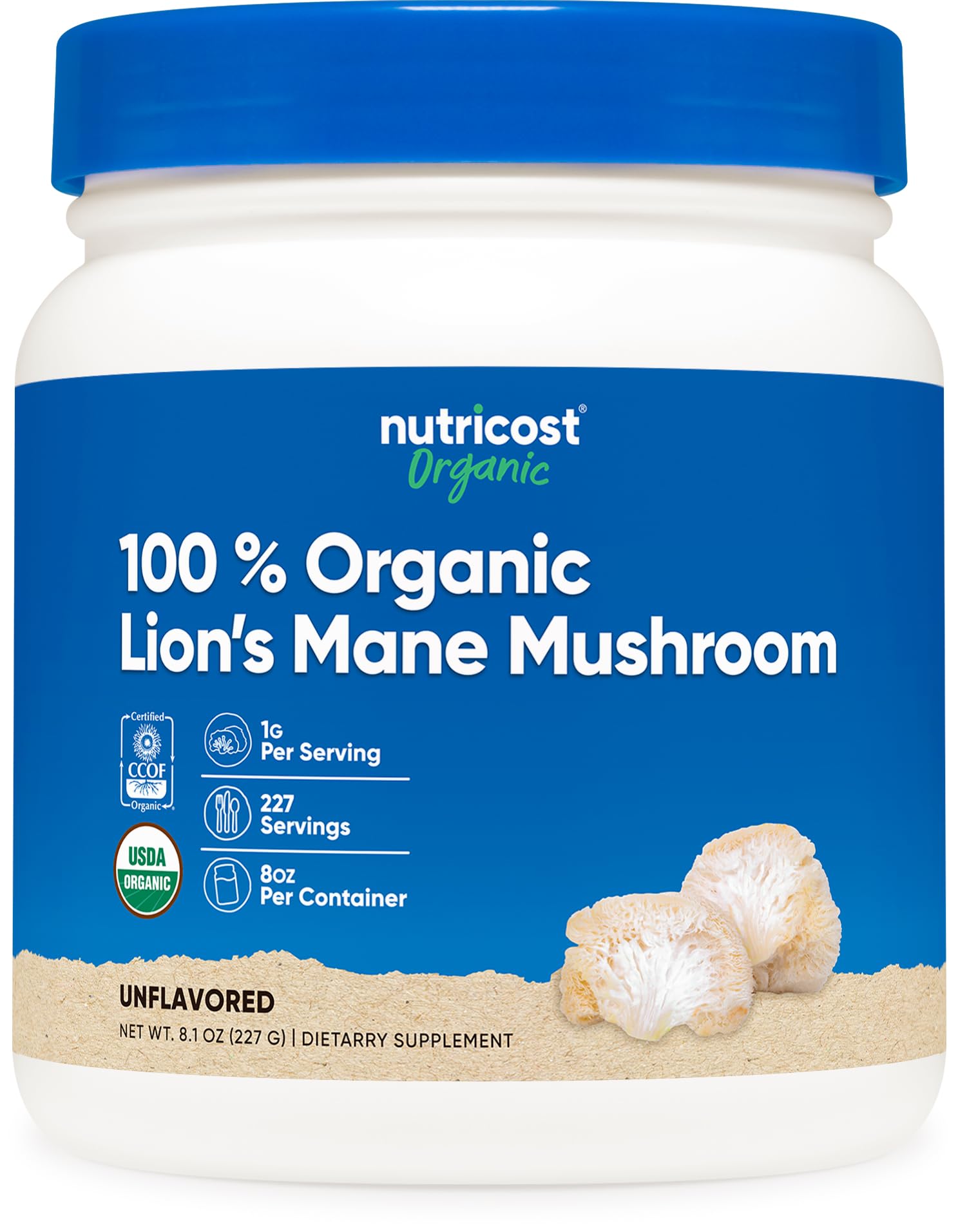 8 oz of Nutricost Pure, USDA Certified Organic, Lion's Mane Powder in every bottle. Each bottle contains 227 servings of Vegetarian, Gluten Free, Non-GMO Lion's Mane Mushroom Powder. Nutricost, located and headquartered in the USA, only uses the best ingredients to ensure maximum quality and to help you feel your best! By keeping our supplement recipes simple and clean, you get the best experience possible with Nutricost. Our supplements are manufactured in a GMP-compliant and FDA-registered facility and each batch of every product is tested by independent, ISO-accredited laboratories. These statements have not been evaluated by the Food and Drug Administration. This product is not intended to diagnose, treat, cure, or prevent any disease.
