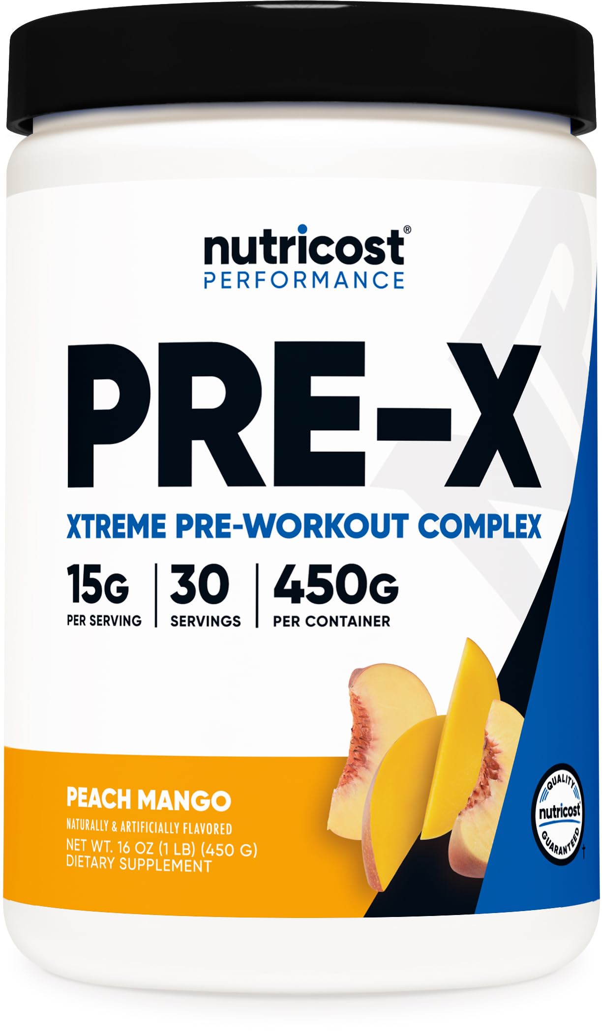 Nutricost Pre-X Xtreme Pre-Workout Complex Powder Peach Mango 30 Servings Vegetarian Non-GMO and Gluten Free Peach Mango 15.9 Ounce (Pack of 1)