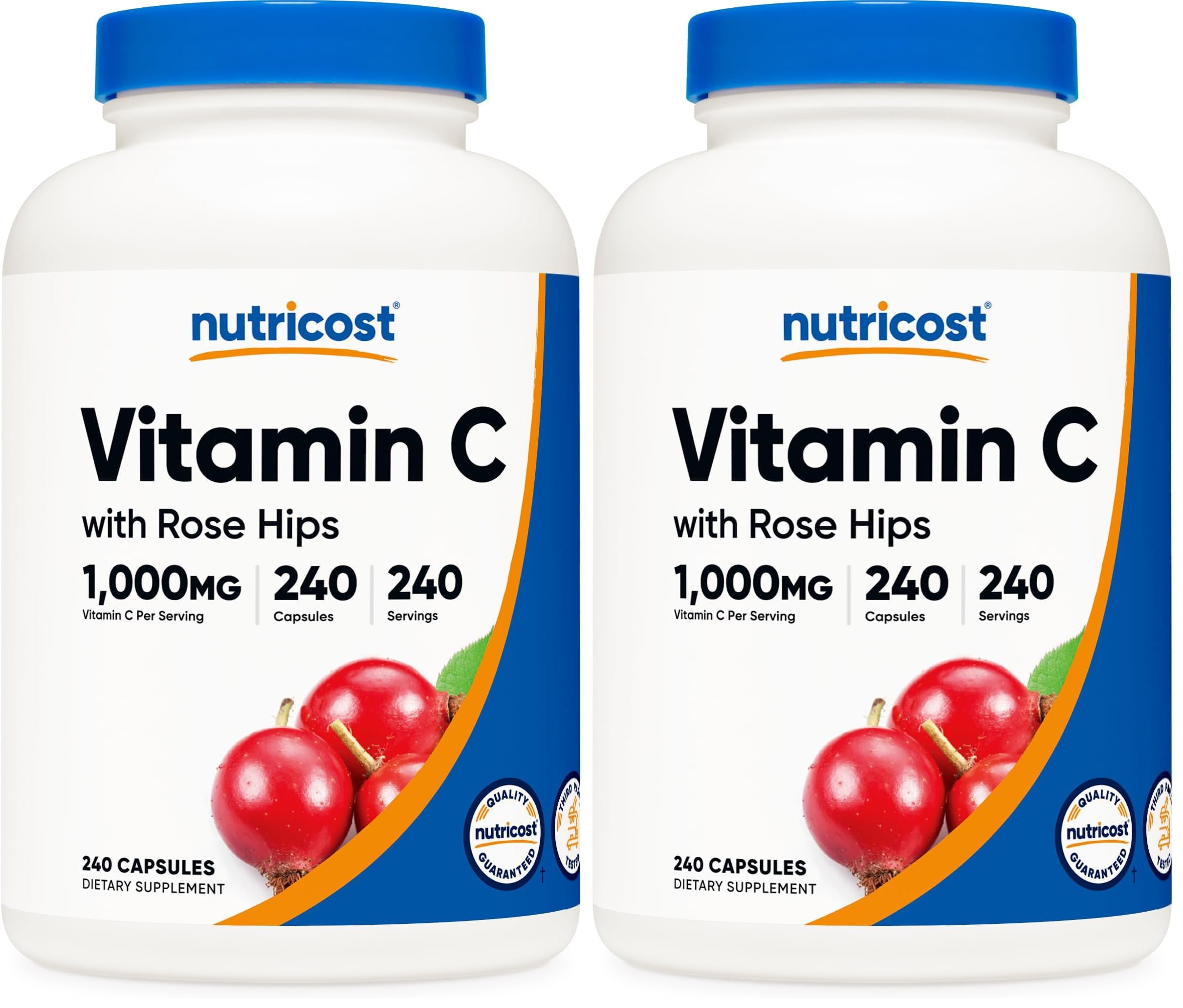 Nutricost Vitamin C with Rose HIPS 1025mg 240 Capsules - Vitamin C 1 000mg Rose HIPS 25mg Premium Non-GMO Gluten Free Supplement (Pack of 2)