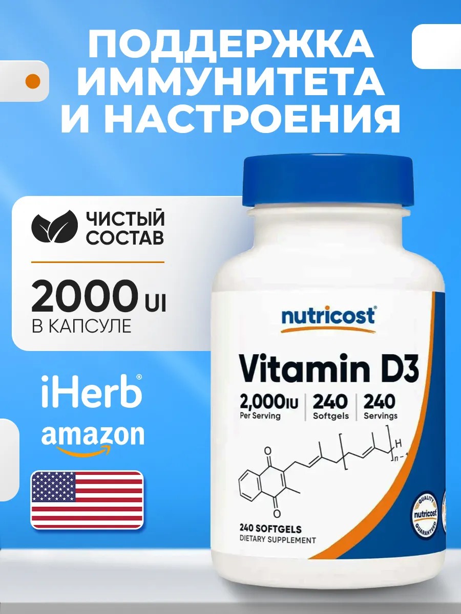 Витамин D3 2000 IU Nutricost обладает рядом преимуществ: