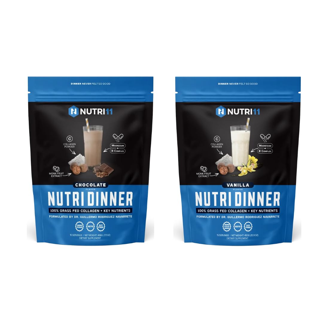 NutriDinner Collagen Protein Powder Bundle Chocolate & Vanilla | Grass-Fed Collagen with Magnesium & B-Vitamins | Sleep & Recovery Support | Hydrolyzed Collagen Peptides for Joint Skin & Muscle Hea