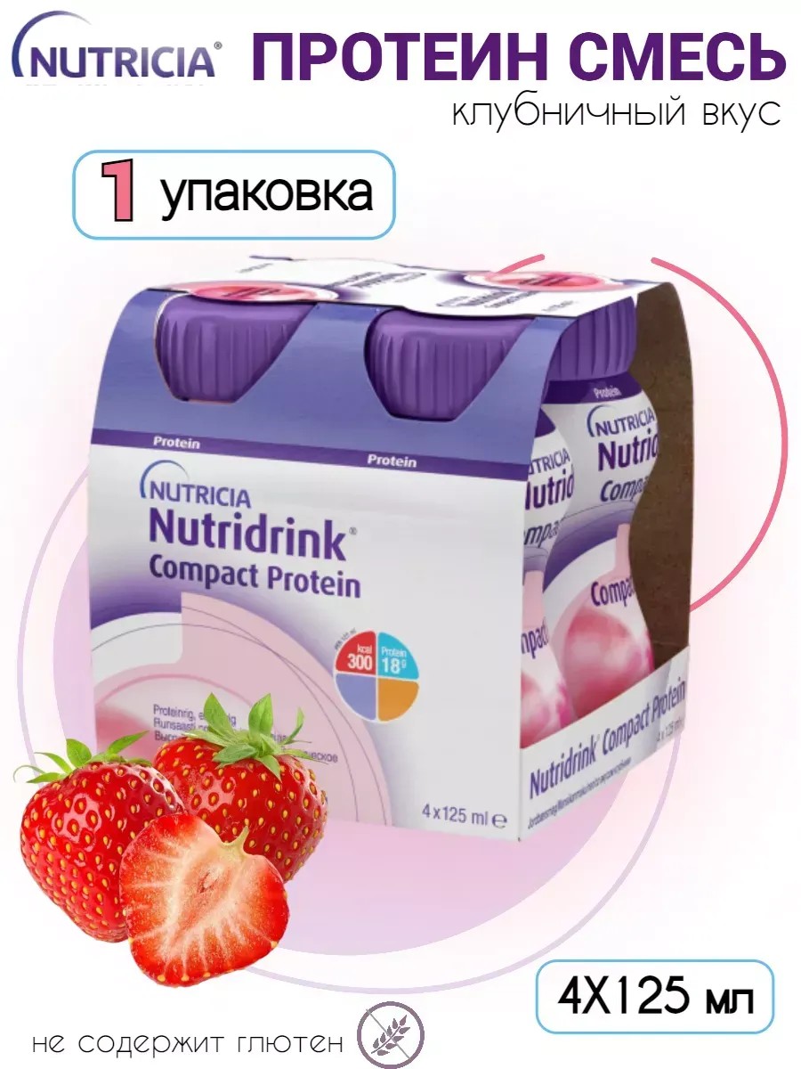 Nutridrink Нутридринк Компакт Протеин клубника 125мл 4шт - 1 уп