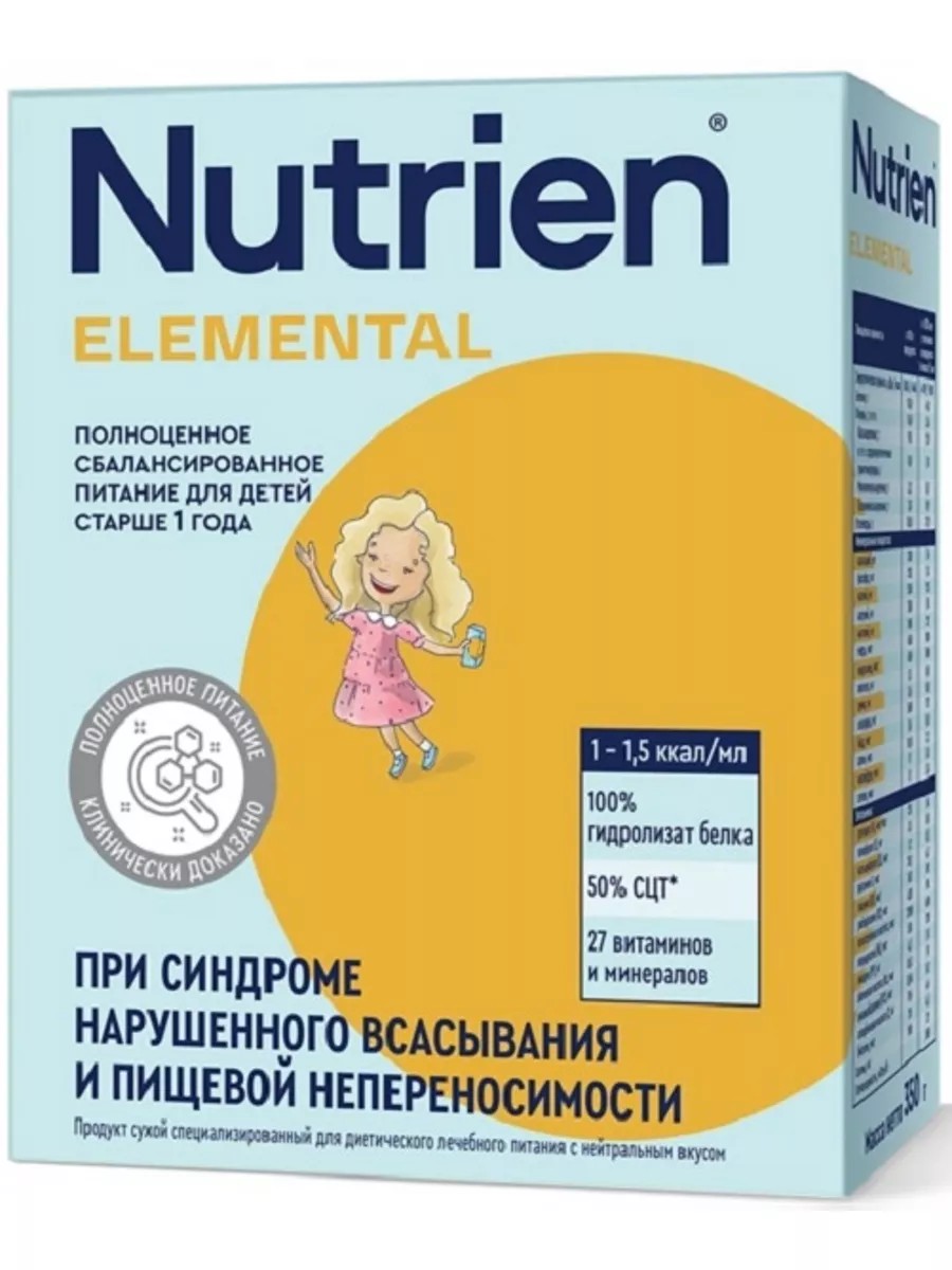 Nutrien Elemental is a specialized therapeutic nutrition based on hydrolyzed protein for children over 1 year old with malabsorption syndrome and food intolerance.