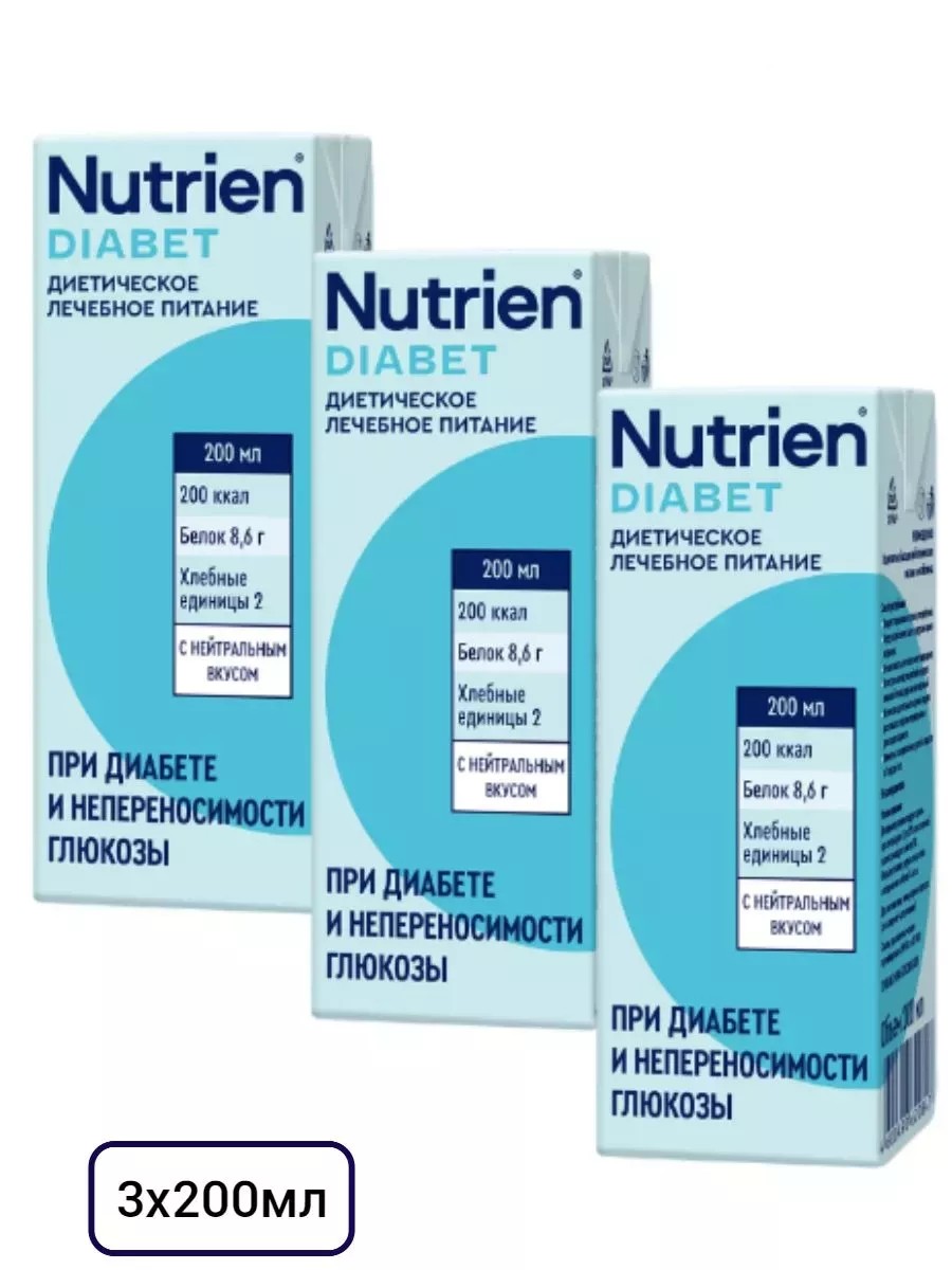 Нутриэн диабет 1 ккал/мл - полноценное специализированное питание для больных сахарным диабетом, готовая жидкая смесь, с нейтральным вкусом. Применяется в качестве основного или дополнительного питания, в том числе для энтерального (зондового) питания.