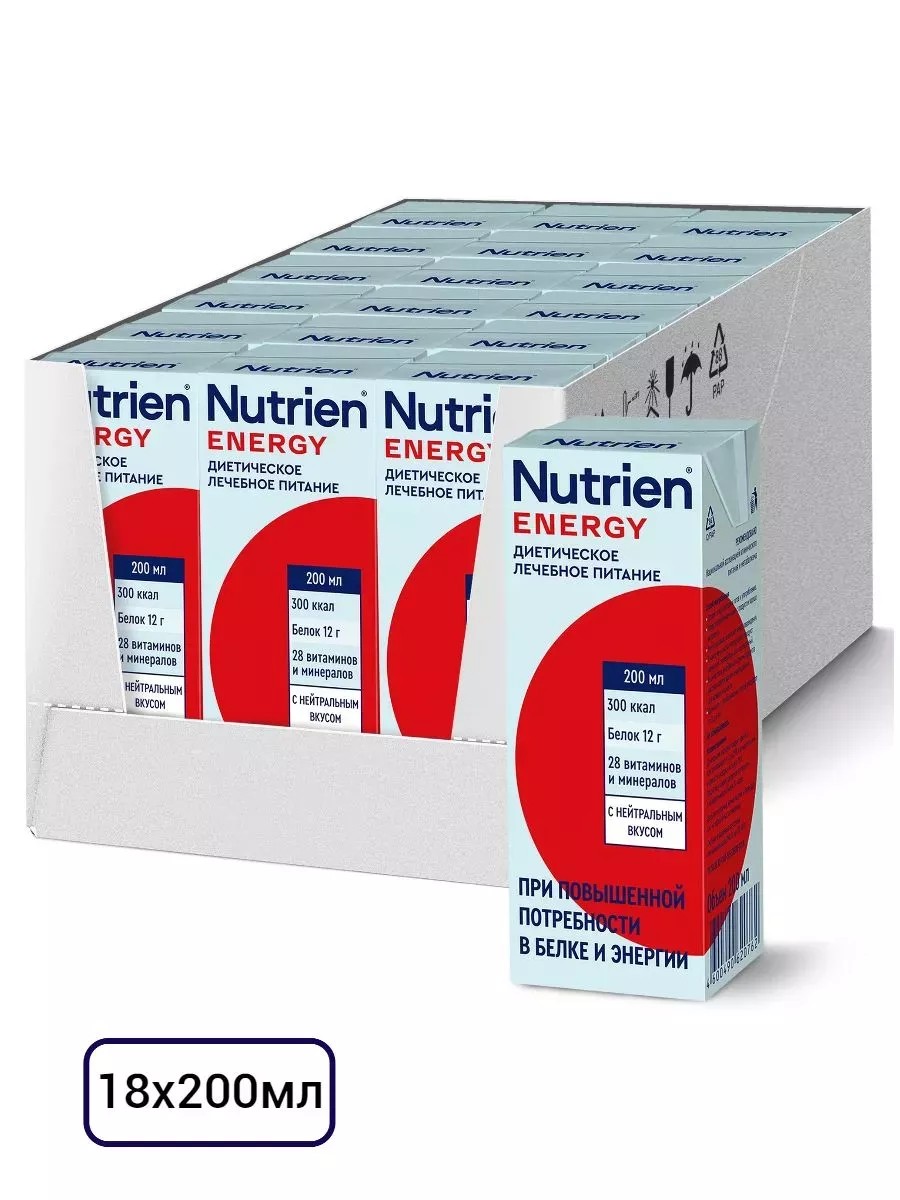 Нутриэн энергия с нейтральным вкусом - это полноценный специализированный продукт для диетического лечебного (энтерального) питания для пациентов с высокими потребностями в белке и энергии при различных заболеваниях, включая критические состояния. Для профилактики и устранения недостаточности питания, а также коррекции состава рациона питания. Повышенное содержание белка и энергии. Не содержит глютен, лактозу и холестерин в клинически значимых количествах. Не содержит искусственных красителей и ароматизаторов. Он имеет нейтральный вкус.