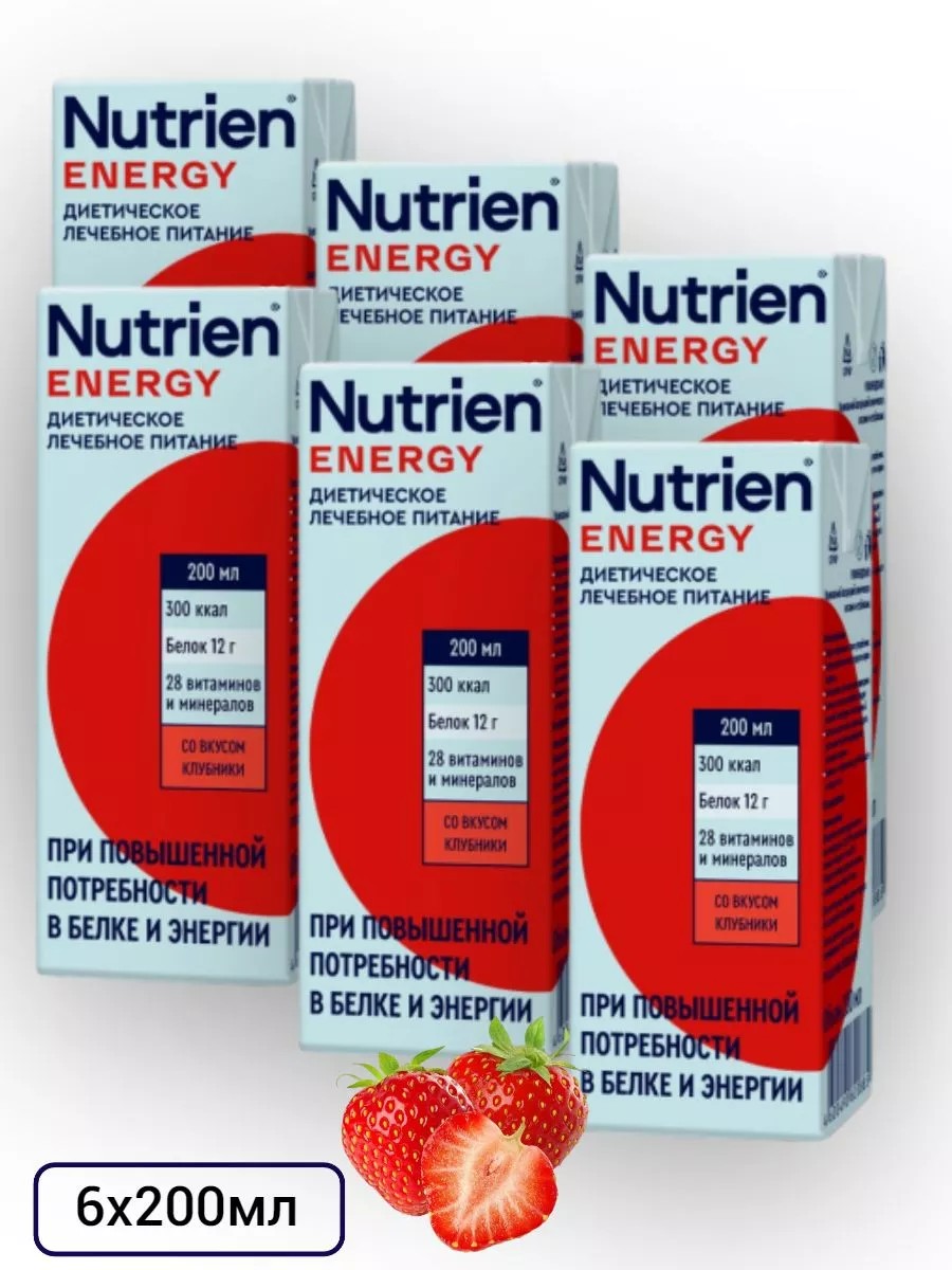 Nutrien Energy (Нутриэн Энергия) со вкусом клубники 200 мл - полноценный специализированный продукт для диетического лечебного (энтерального) питания для пациентов с высокими потребностями в белке и энергии при различных заболеваниях, включая критические состояния. Для профилактики и устранения недостаточности питания, а также коррекции состава рациона питания.