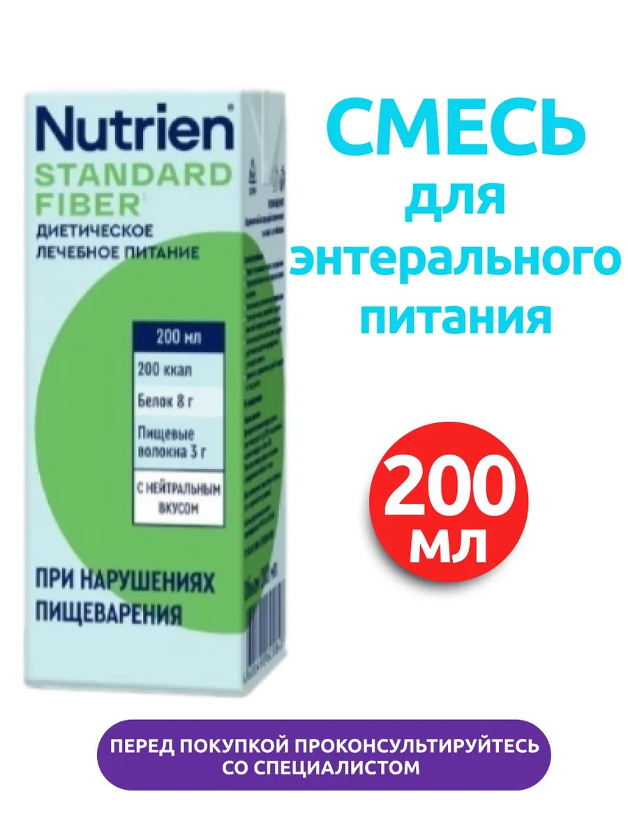 Nutrien Standard with neutral-flavored dietary fiber is a specialized product for dietary therapeutic (enteral) nutrition. This complete therapeutic food, ready to use, is used to prevent and treat malnutrition, as well as for dietary adjustments.