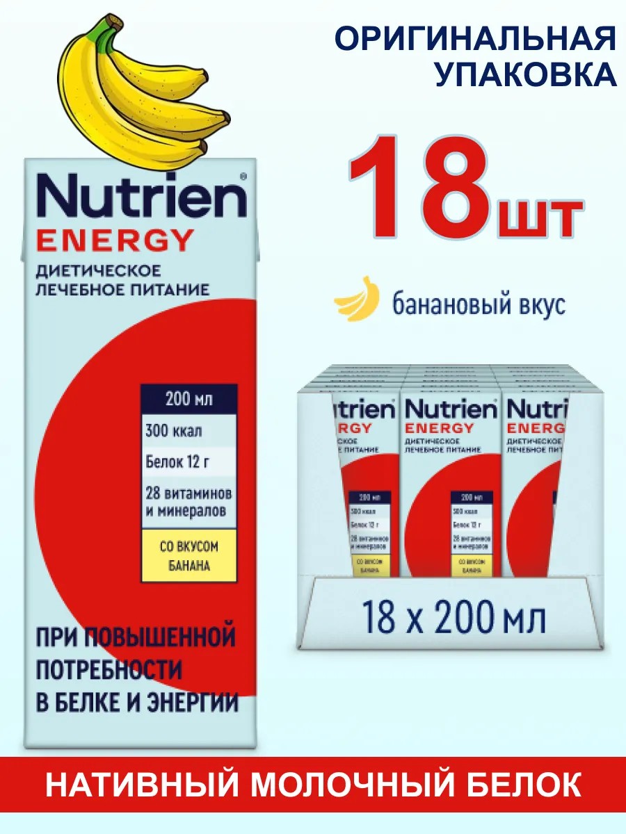 Nutrien Energy is a complete, specialized nutritional supplement containing a large amount of easily digestible protein and energy in a small volume. It provides nutritional support to stroke patients with limited fluid intake and is used at all stages of treatment and rehabilitation.
