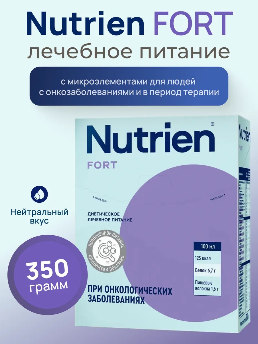 Нутриэн Форт с нейтральным вкусом 350 г — это специализированная сухая смесь для диетического и лечебного питания взрослых и детей старше 3 лет. Продукт подходит для энтерального (зондового) и перорального питания при онкологических заболеваниях, в том числе в период химио- и лучевой терапии, а также при недостаточности питания, кахексии, анорексии и в восстановительный период после операций.
