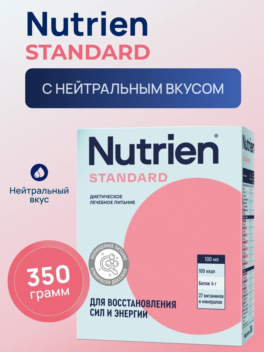 Нутриэн Стандарт — полноценное лечебное питание в сухой форме для восстановления сил и энергии. Содержит оптимальный баланс белков, жиров и углеводов, обогащен 27 витаминами и минералами. Подходит при снижении аппетита, после операций и при нарушениях пищеварения.
