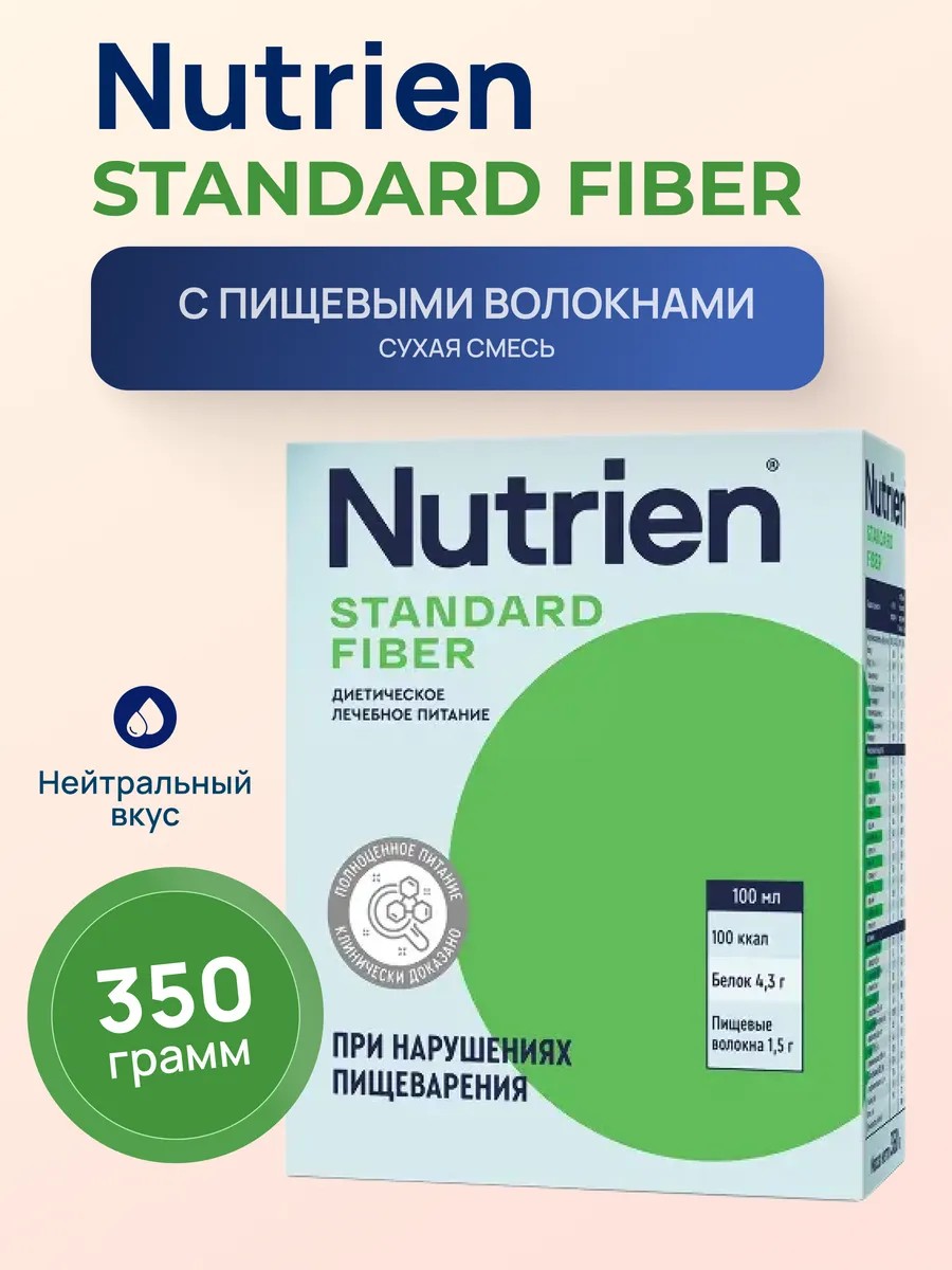 Nutrien Standard Fiber is easily diluted with water and can be used as a primary or supplemental source of nutrition. Contraindications: individual intolerance to any of the ingredients, conditions that prohibit enteral nutrition (intestinal obstruction, persistent vomiting).