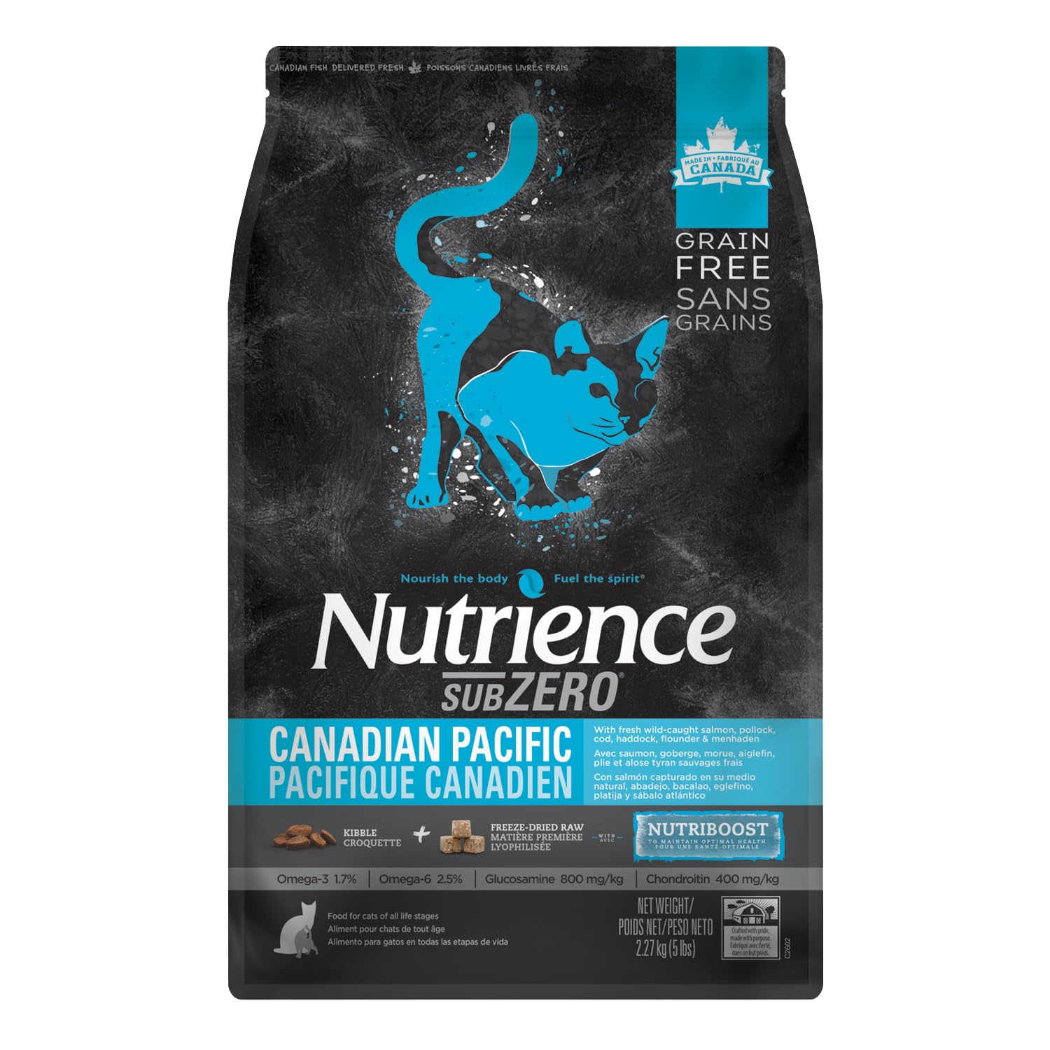 Nutrience Grain Free Subzero is a Canadian-made ancestral diet combining protein-rich kibble and freeze-dried NUTRIBOOST to deliver the nutritional benefits of raw in a convenient & easy to use recipe. Fresh salmon & herring is infused with green mussels, pacific cod liver, pumpkin and Acadian kelp and gently freeze-dried to lock in the natural goodness of raw, providing superior flavor and promoting optimal health. Our Canadian Pacific formula is prepared with fresh, never frozen wild-caught fish and real freeze-dried fish for a superior flavor that even the finickiest cats will crave.