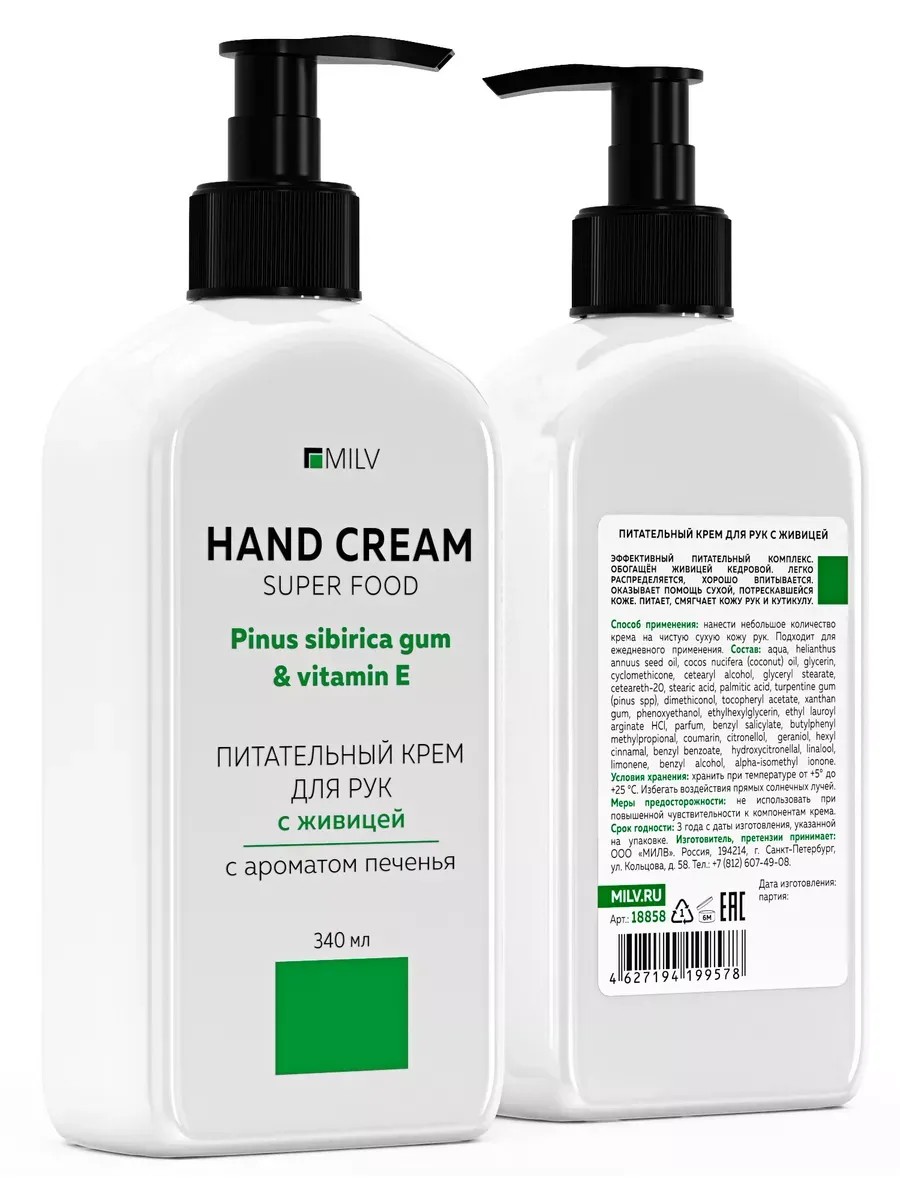 Питательный крем для рук с живицей оказывает помощь сухой, потрескавшейся коже. Питает, смягчает кожу рук и кутикулу. Легко распределяется, хорошо впитывается. Активные компоненты: живица кедровая, масло кокоса, витамин Е. Основные ноты аромата: сливочное печенье.